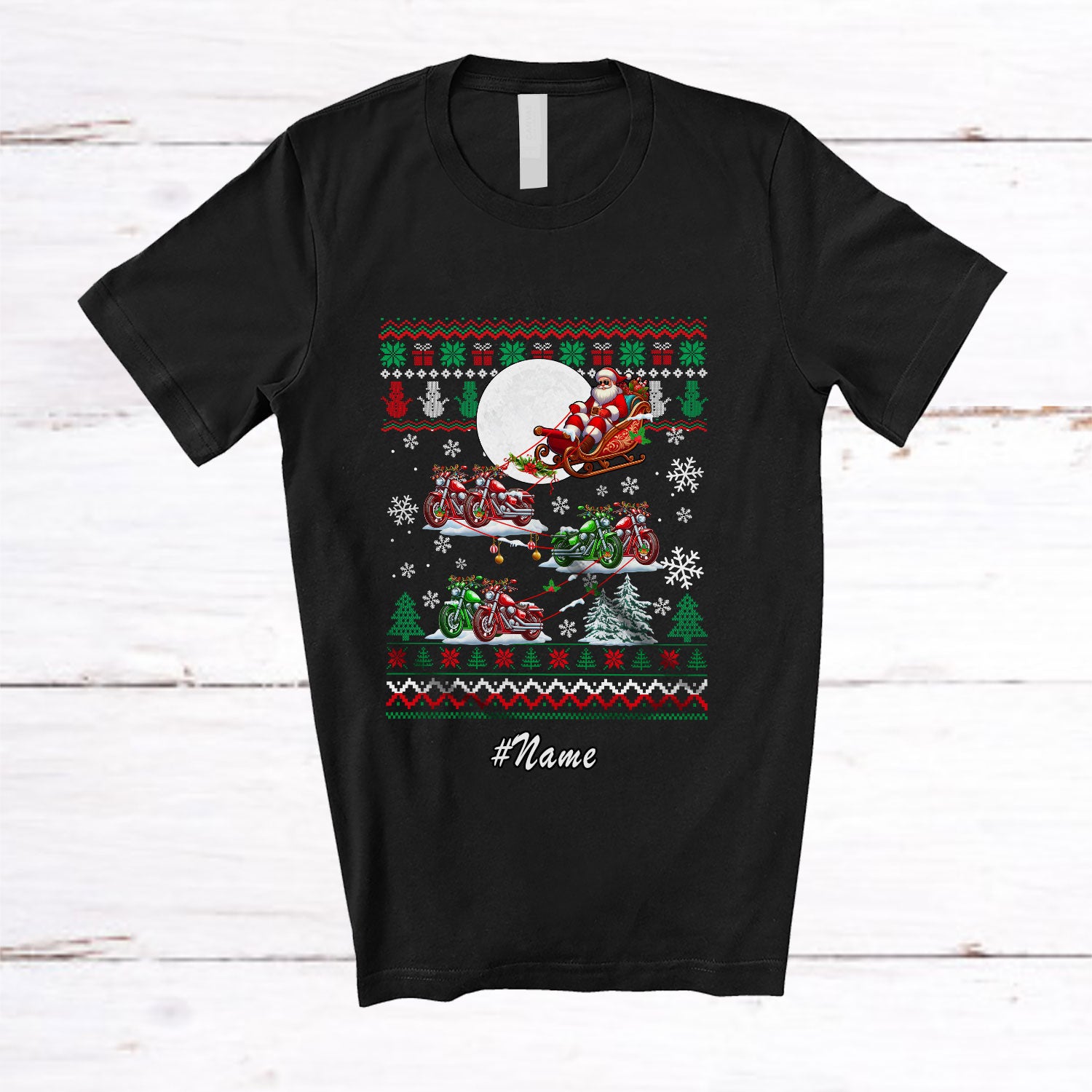 Personalized Custom Name Santa Sleigh Reindeer Motorcycles; Amazing Sweater Biker T-Shirt