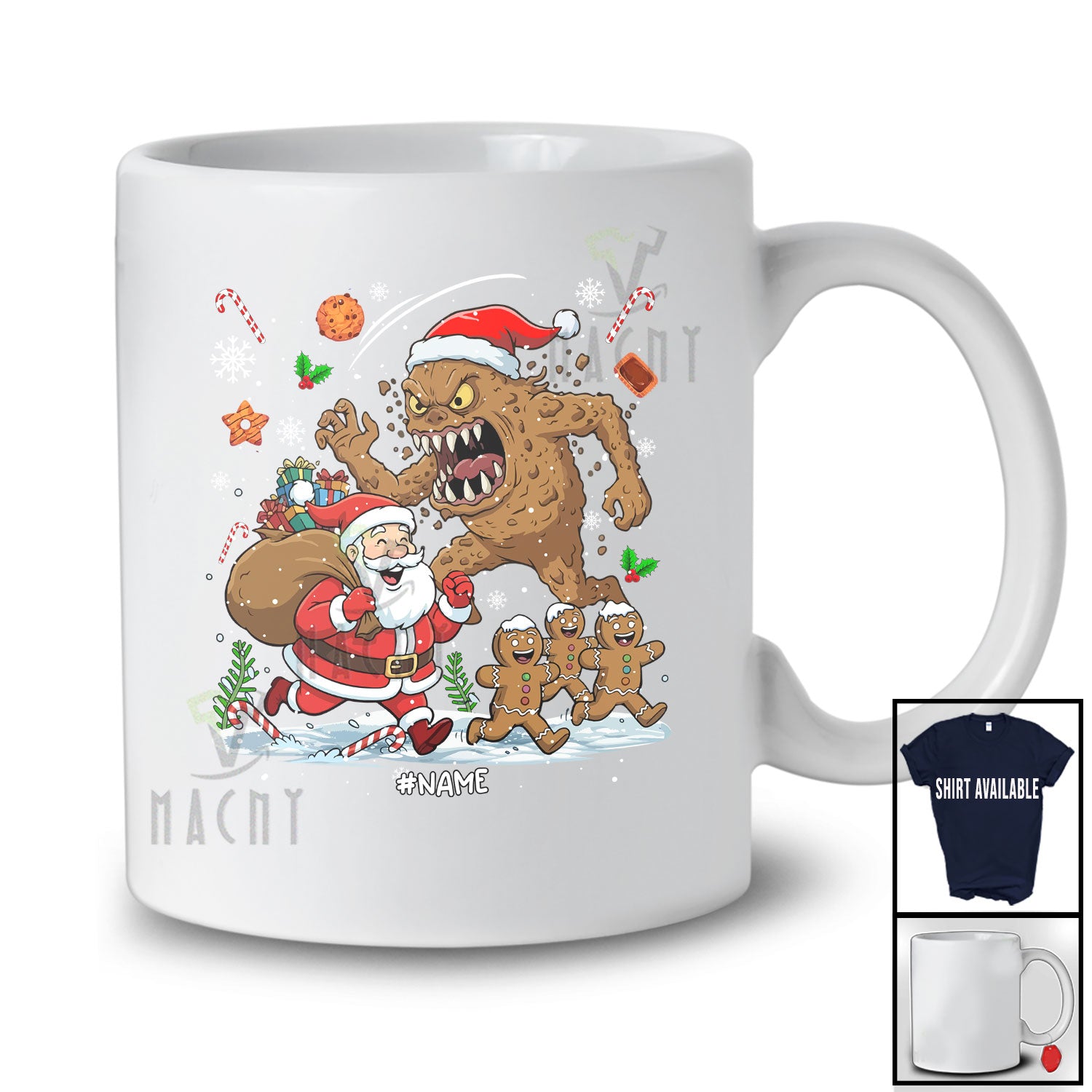 new MacnyStore - Personalized Custom Name Scary Christmas Cookie Monster; Humorous Santa Gingerbread Running T-Shirt – Macnystore