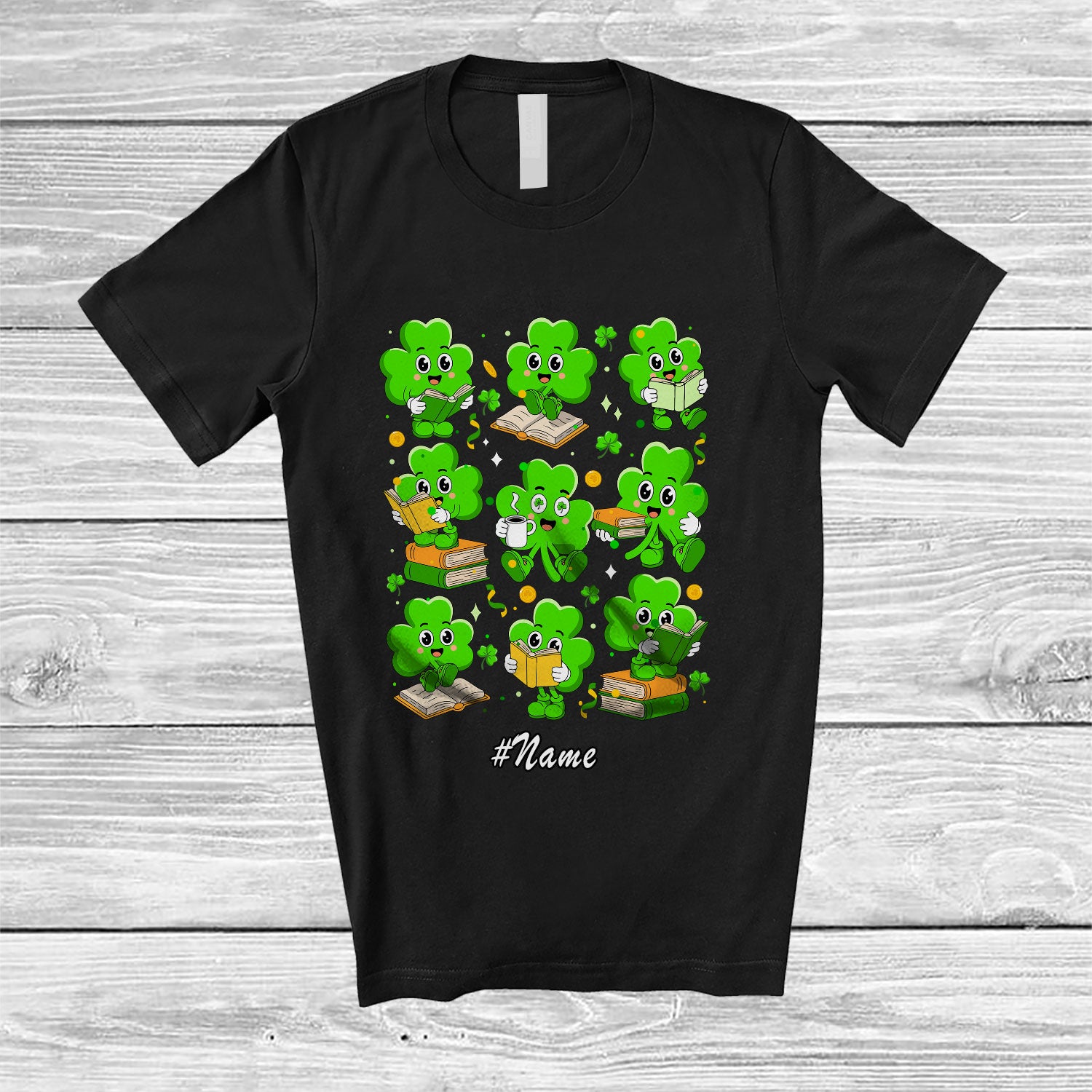 Personalized Custom Name Shamrock Reading Book Collection; Adorable St. Patrick's Day Librarian Teacher T-Shirt