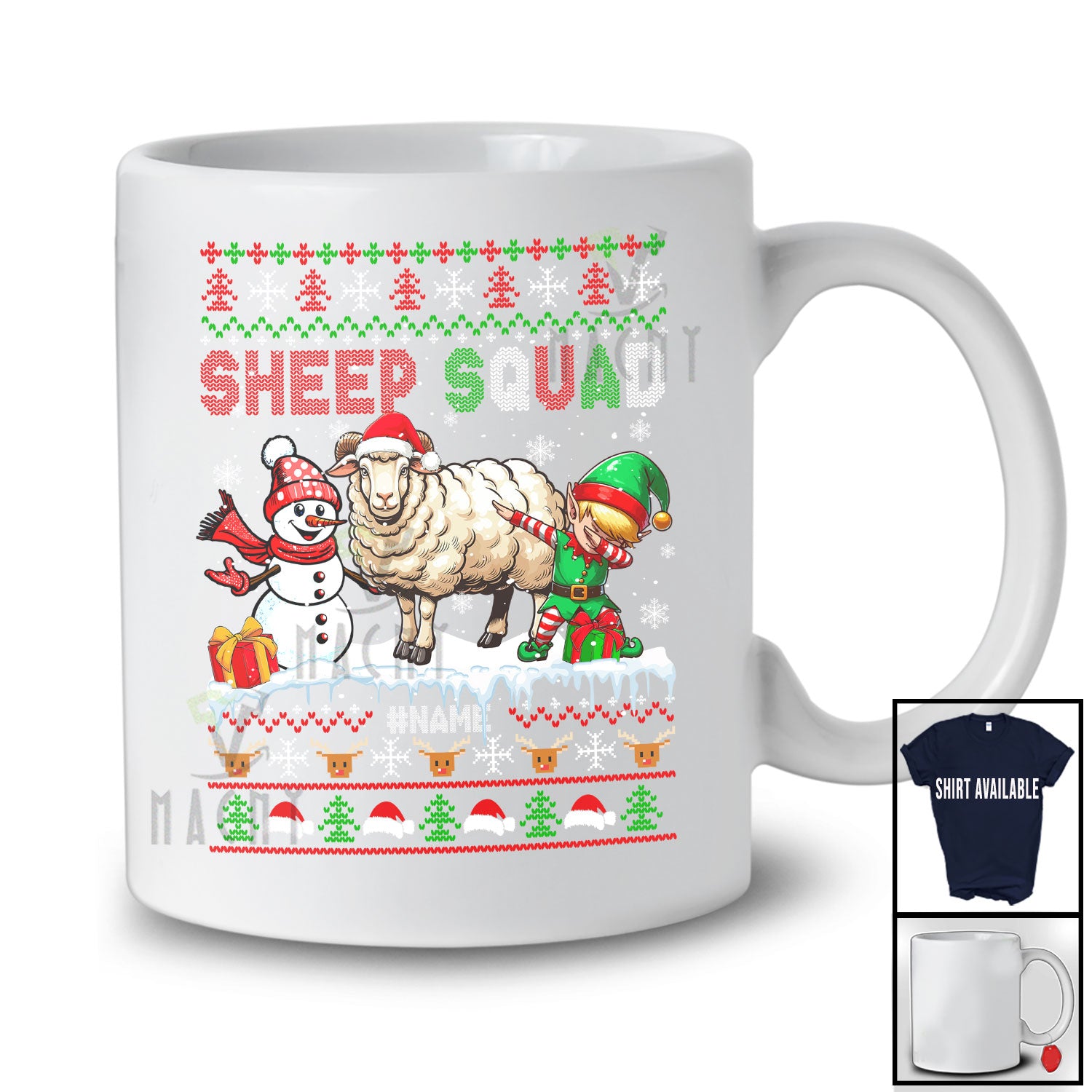 • Personalized Custom Name Sheep Squad; Amazing Christmas Sweater Snowman Dabbing Elf; Animal T-Shirt. This cotton t-shirt is a durable staple product with a classic fit. One of the most popular items, it has a relaxed style made for everyday and casual wear.