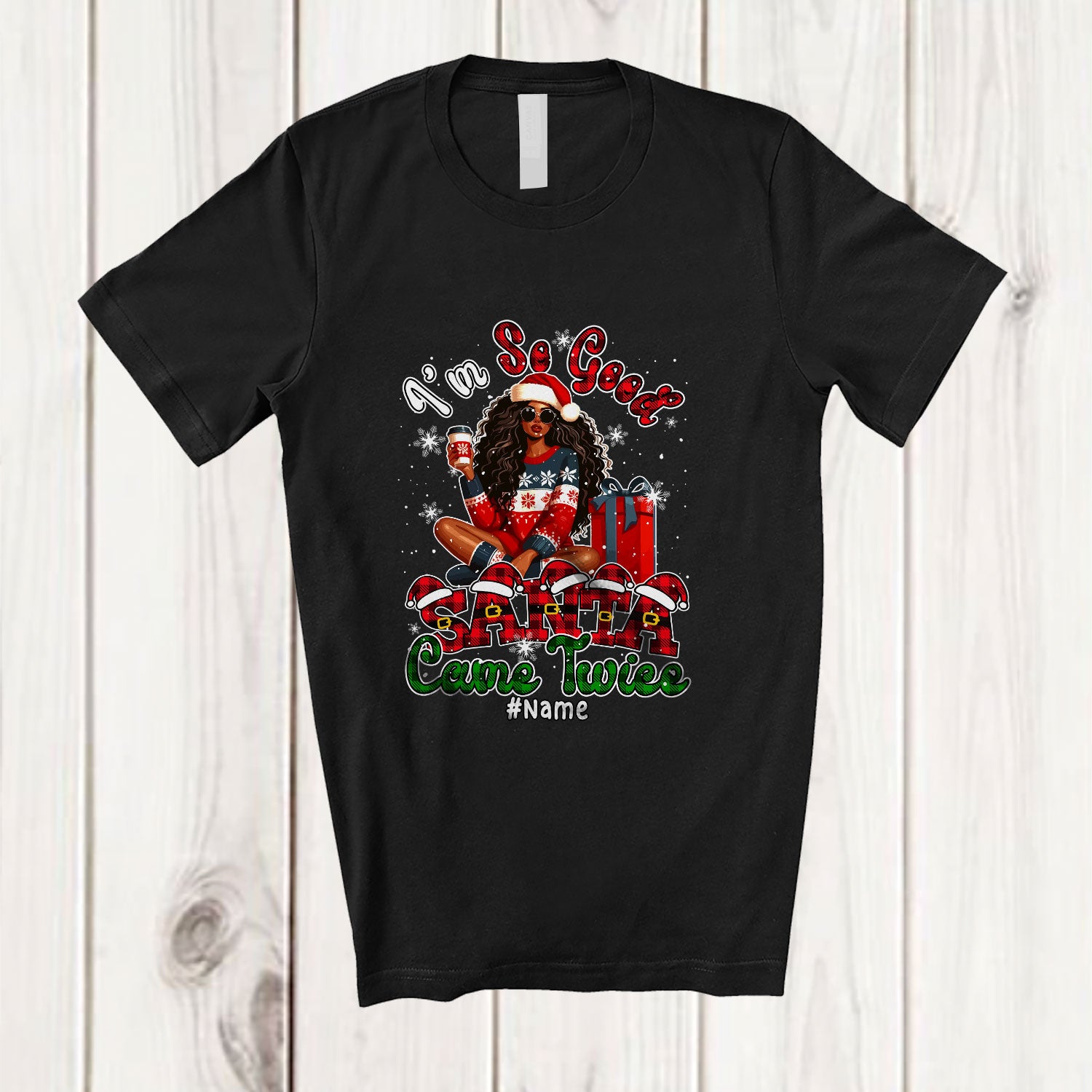 The Personalized Custom Name So Good Santa Came Twice; Merry Christmas Plaid Afro Girl; Family T-Shirt destined to impress, and priced at only $12.95, for a limited time.