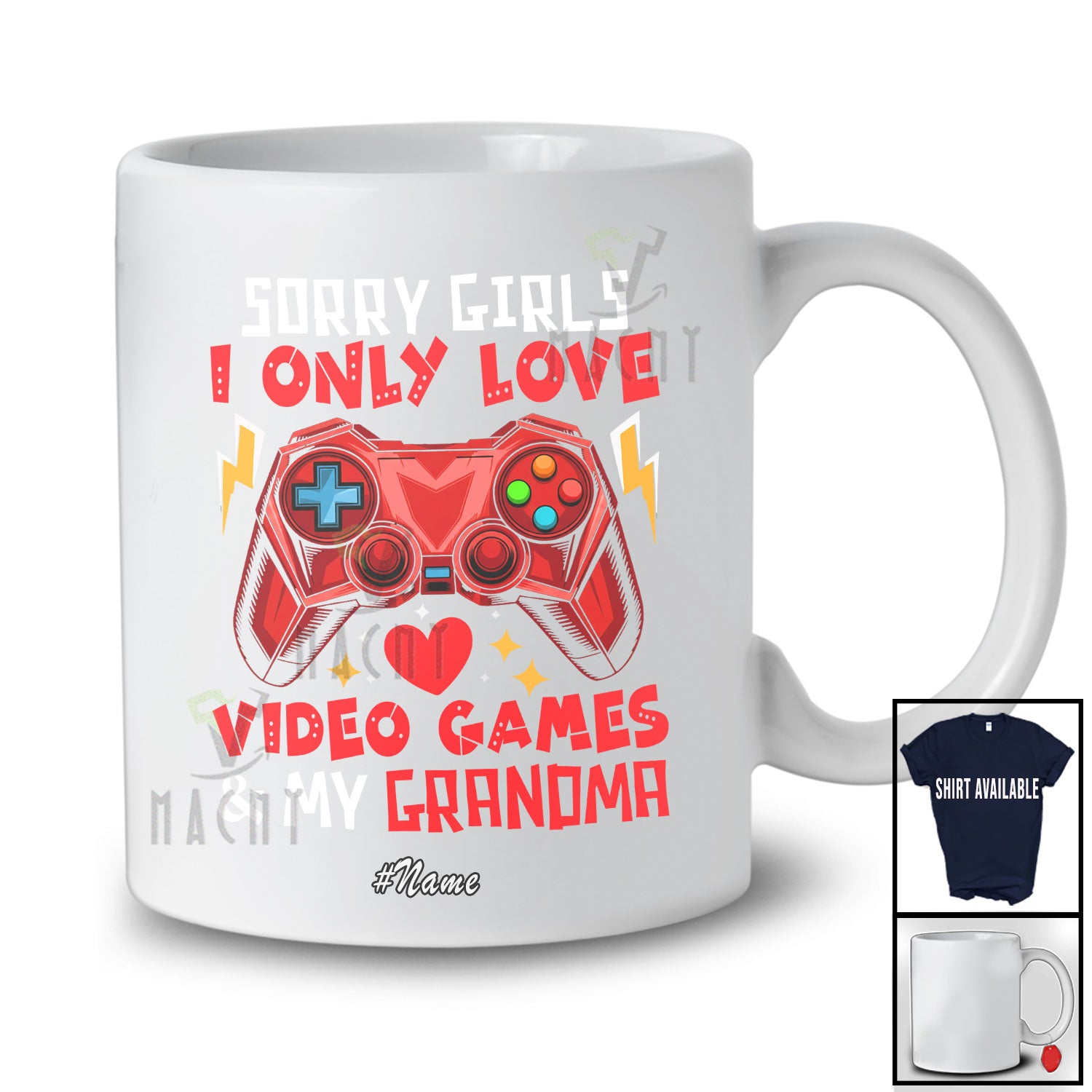 Personalized Custom Name Sorry I Love Video Games And Grandma; Joyful Valentine Boys Gamer T-Shirt. This cotton t-shirt is a durable staple product with a classic fit. One of the most popular items, it has a relaxed style made for everyday and casual wear.