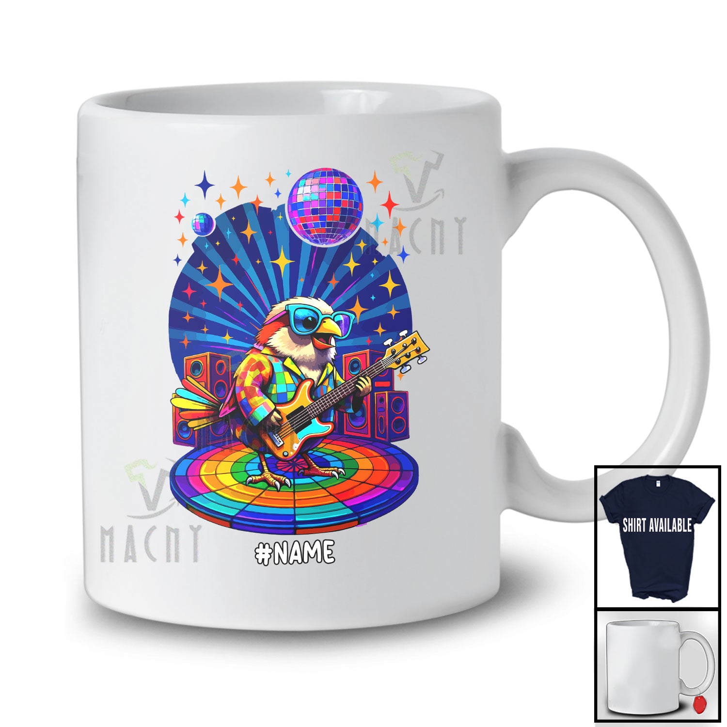 new MacnyStore - Personalized Custom Name Sparrow Disco Sunglasses Playing Rock Guitar; Joyful Guitarist Music T-Shirt – Macnystore