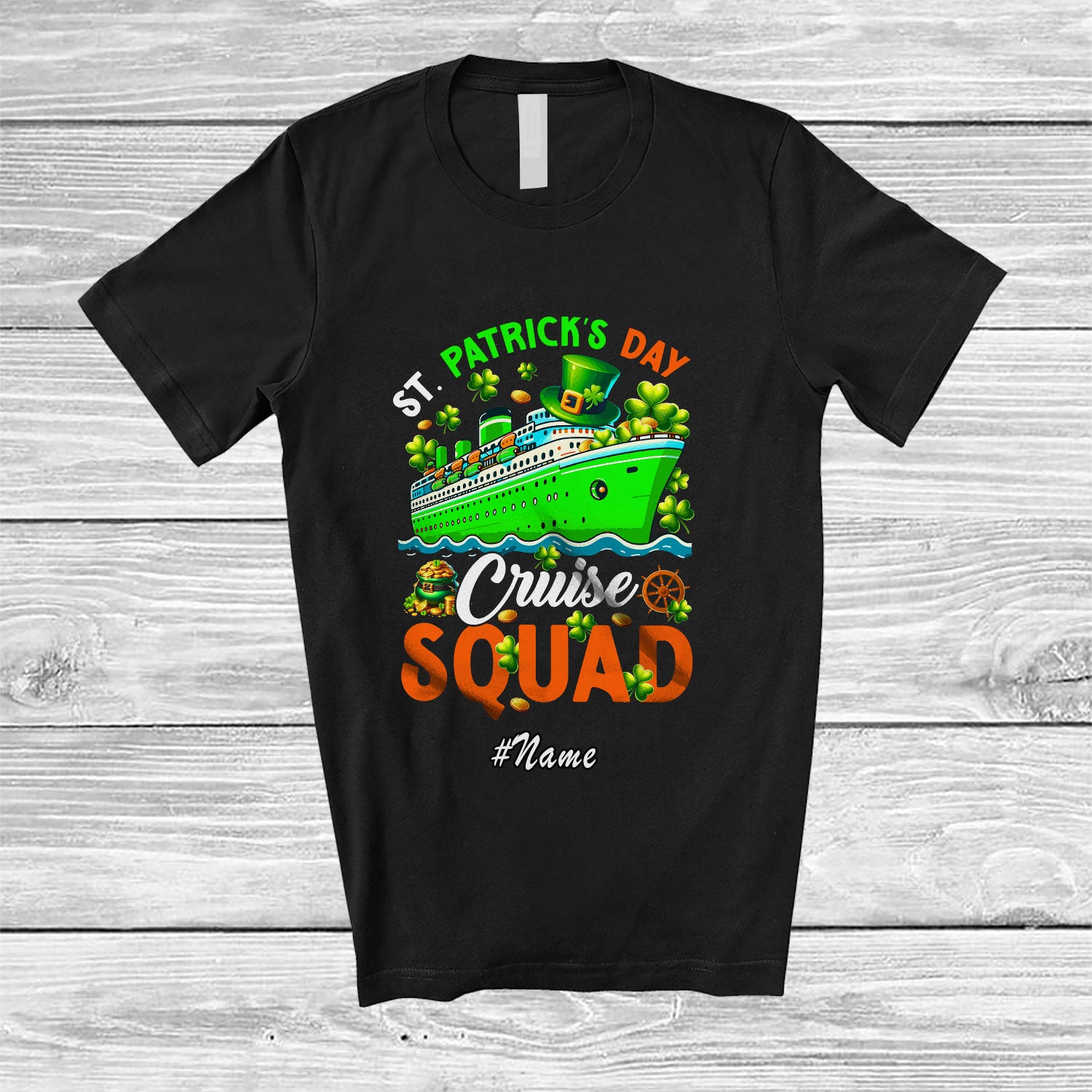 Personalized Custom Name St. Patrick's Day Cruise Squad; Amusing Cruise Ship Captain Shamrock T-Shirt. This cotton t-shirt is a durable staple product with a classic fit. One of the most popular items, it has a relaxed style made for everyday and casual wear.