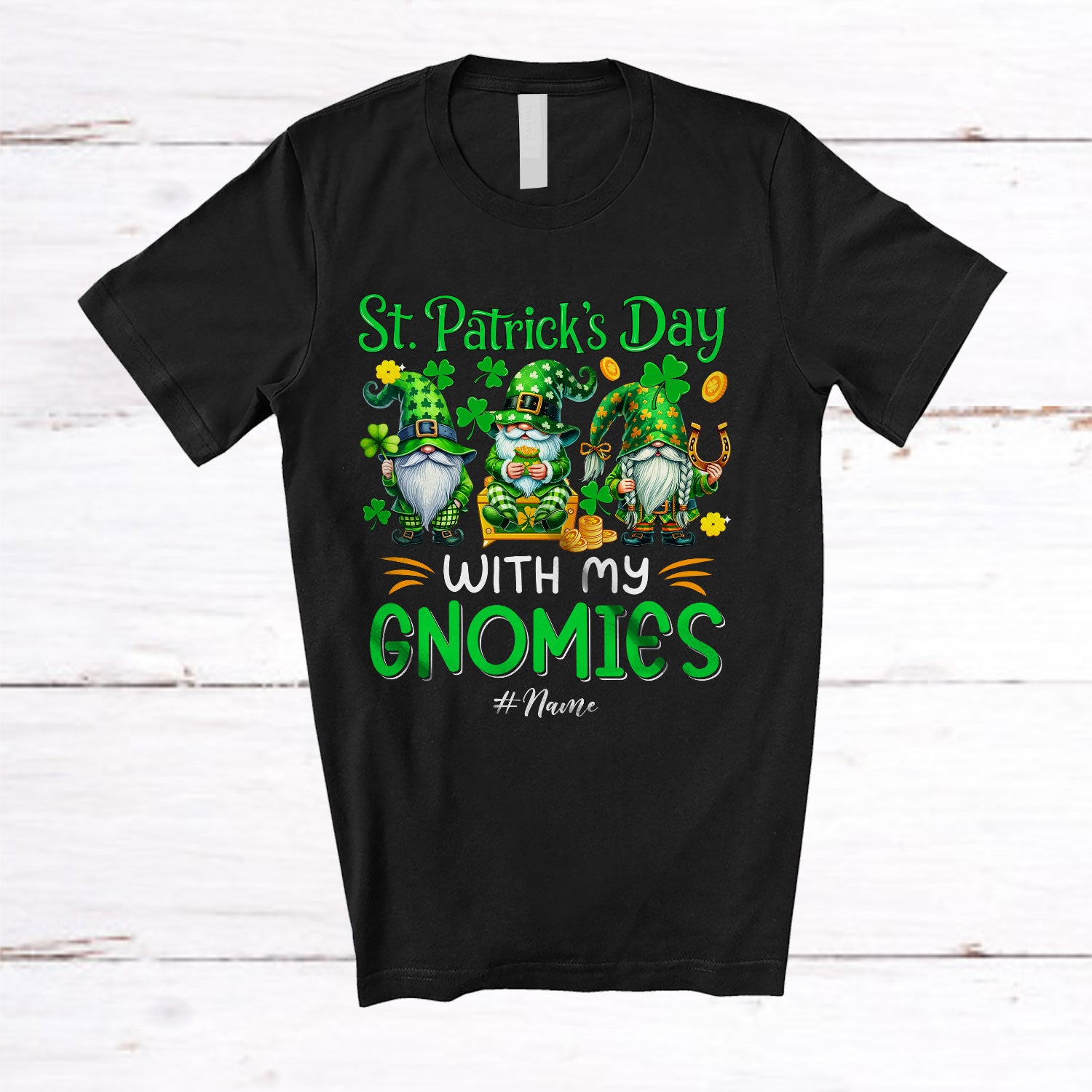 • The Personalized Custom Name St. Patrick's Day With My Gnomies; Lovely Three Gnomes; Shamrocks T-Shirt is the yin, to your yang. You've found what you're looking for.