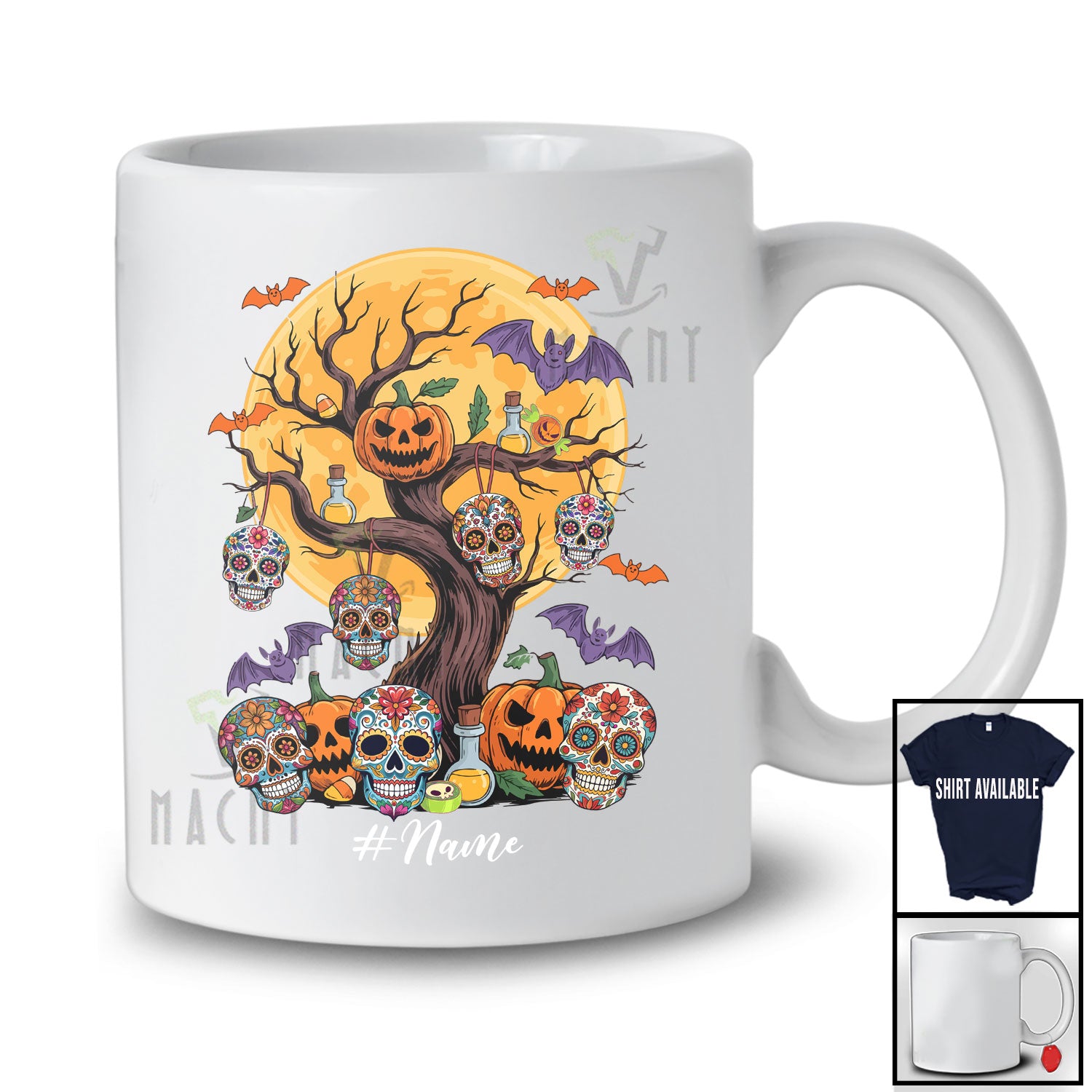 This Personalized Custom Name Sugar Skull On Halloween Tree; Scary Moon Pumpkin; Family T-Shirt is great idea gift for your family, friends in this birthday, christmas, mother's day, father's day, patrick's day or any holiday.