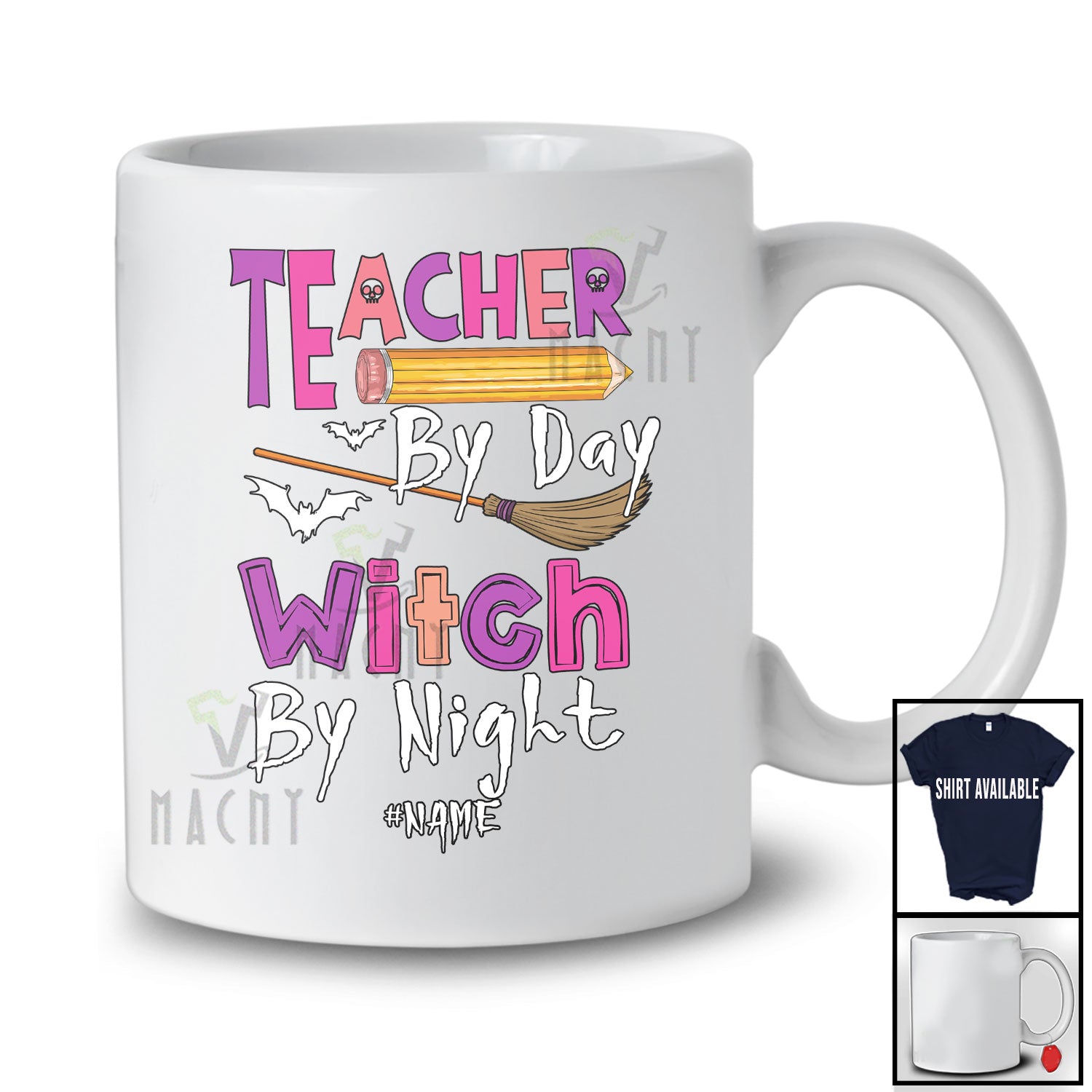 The Personalized Custom Name Teacher By Day Witch By Night; Scary Halloween Teaching Witch T-Shirt was built with people like you in mind. Something to keep you happy. Every. Single. Day.