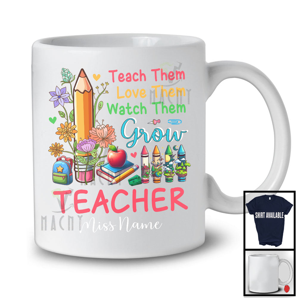 This Personalized Custom Name Teacher Teach Love Watch Them Grow, Lovely Flowers Pencils Group T-Shirt is great idea gift for your family, friends in this birthday, christmas, mother's day, father's day, patrick's day or any holiday.