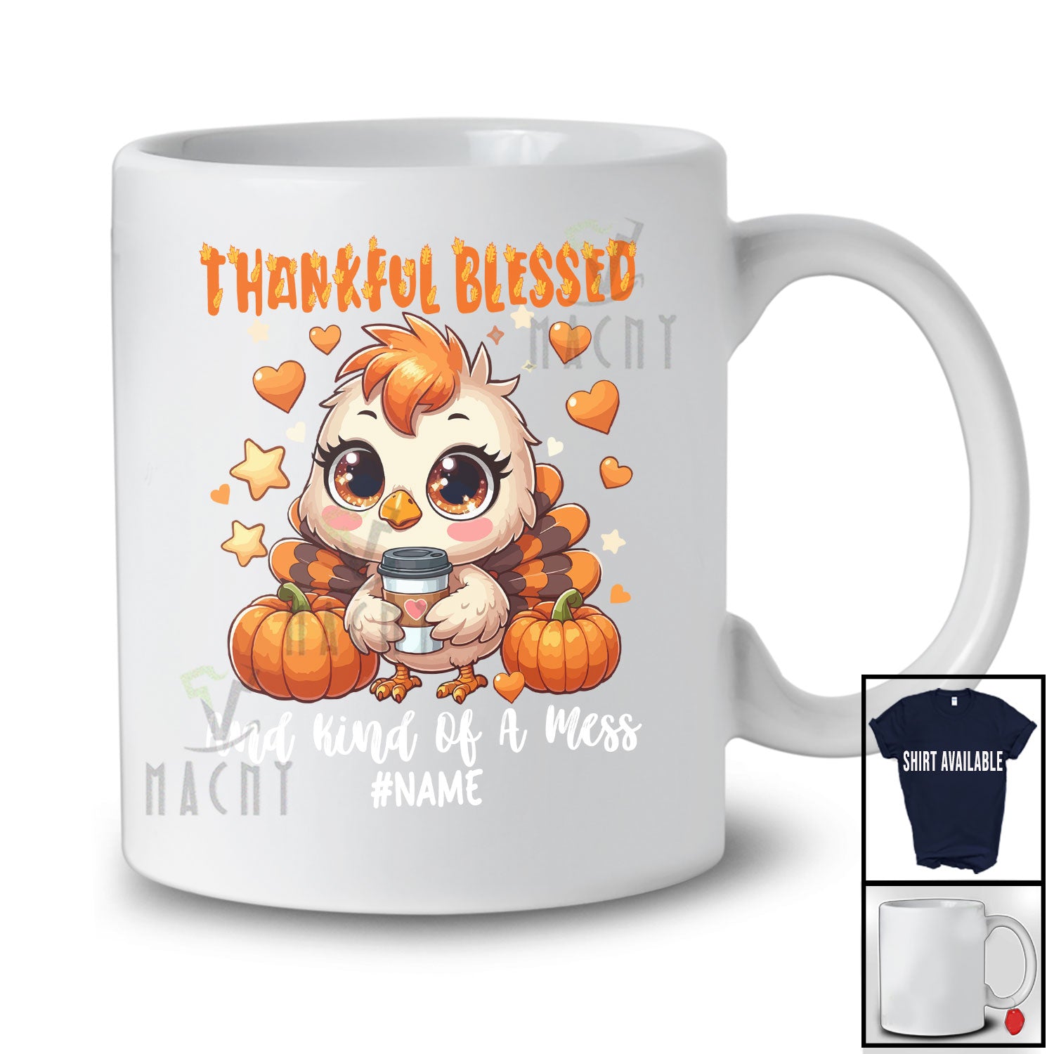 Personalized Custom Name Thankful Blessed Kind Of A Mess; Lovely Thanksgiving Fall Turkey Coffee T-Shirt