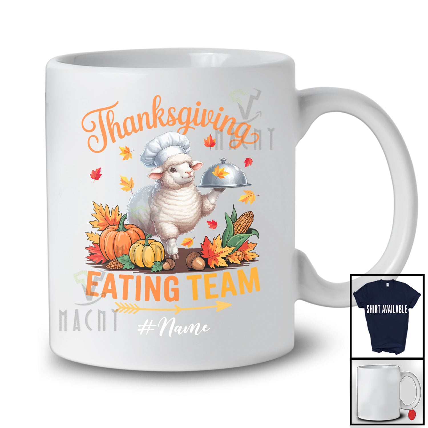 • Every product is unique, just like you. If you're looking for a product that fits the mold of your life, the Personalized Custom Name Thanksgiving Eating Team; Lovely Fall Leaves Sheep Farmer Family T-Shirt is for you.
