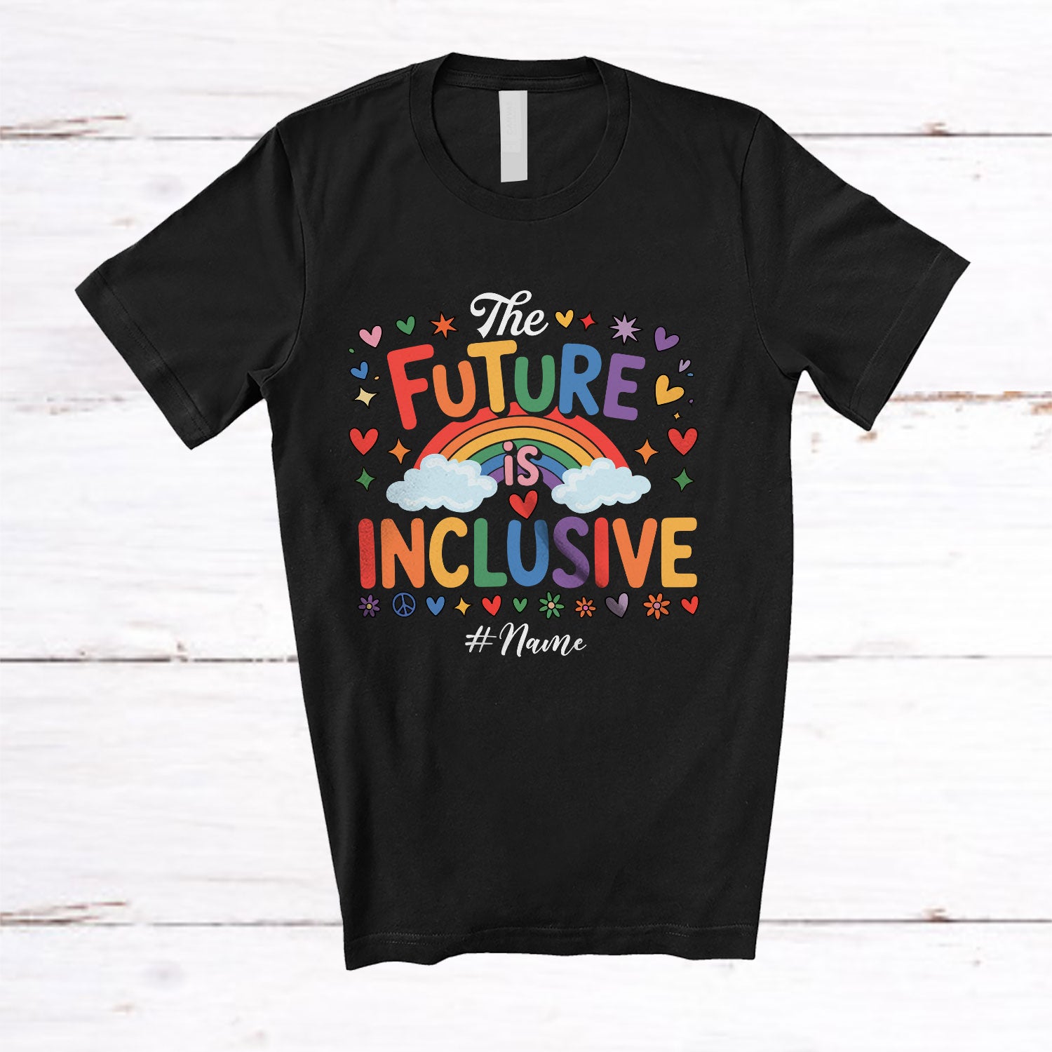 This Personalized Custom Name The Future Is Inclusive; Colorful LGBTQ Pride Rainbow Hearts T-Shirt is great idea gift for your family, friends in this birthday, christmas, mother's day, father's day, patrick's day or any holiday.