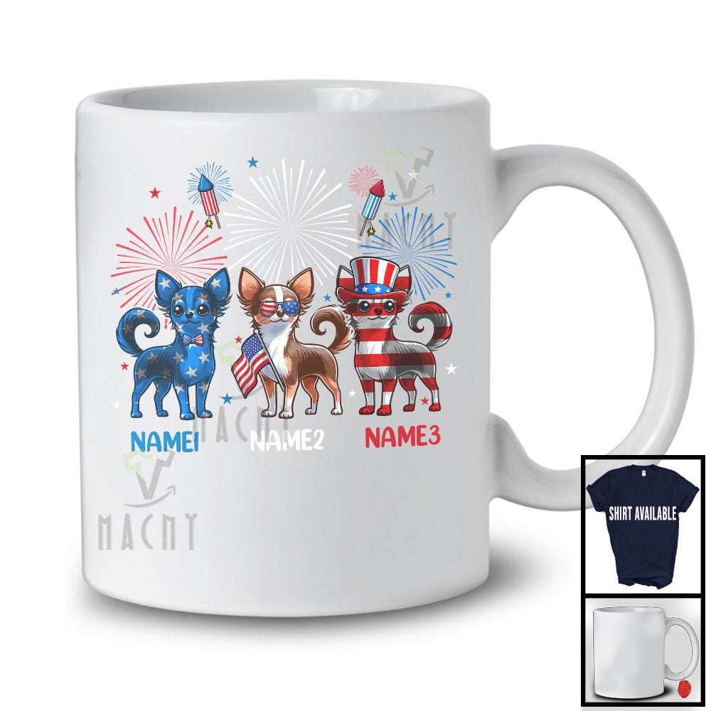 Personalized Custom Name Three Blue Red White Chihuahua, Adorable 4th Of July USA Flag Patriotic T-Shirt