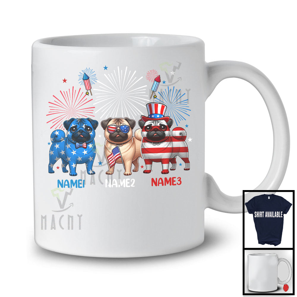 new MacnyStore - Personalized Custom Name Three Blue Red White Pug, Adorable 4th Of July USA Flag Patriotic T-Shirt – Macnystore