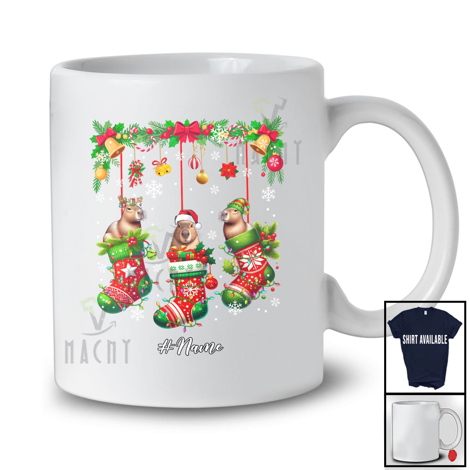 This Personalized Custom Name Three Capybara In Christmas Socks; Amusing X-mas Lights Animal T-Shirt is great idea gift for your family, friends in this birthday, christmas, mother's day, father's day, patrick's day or any holiday.