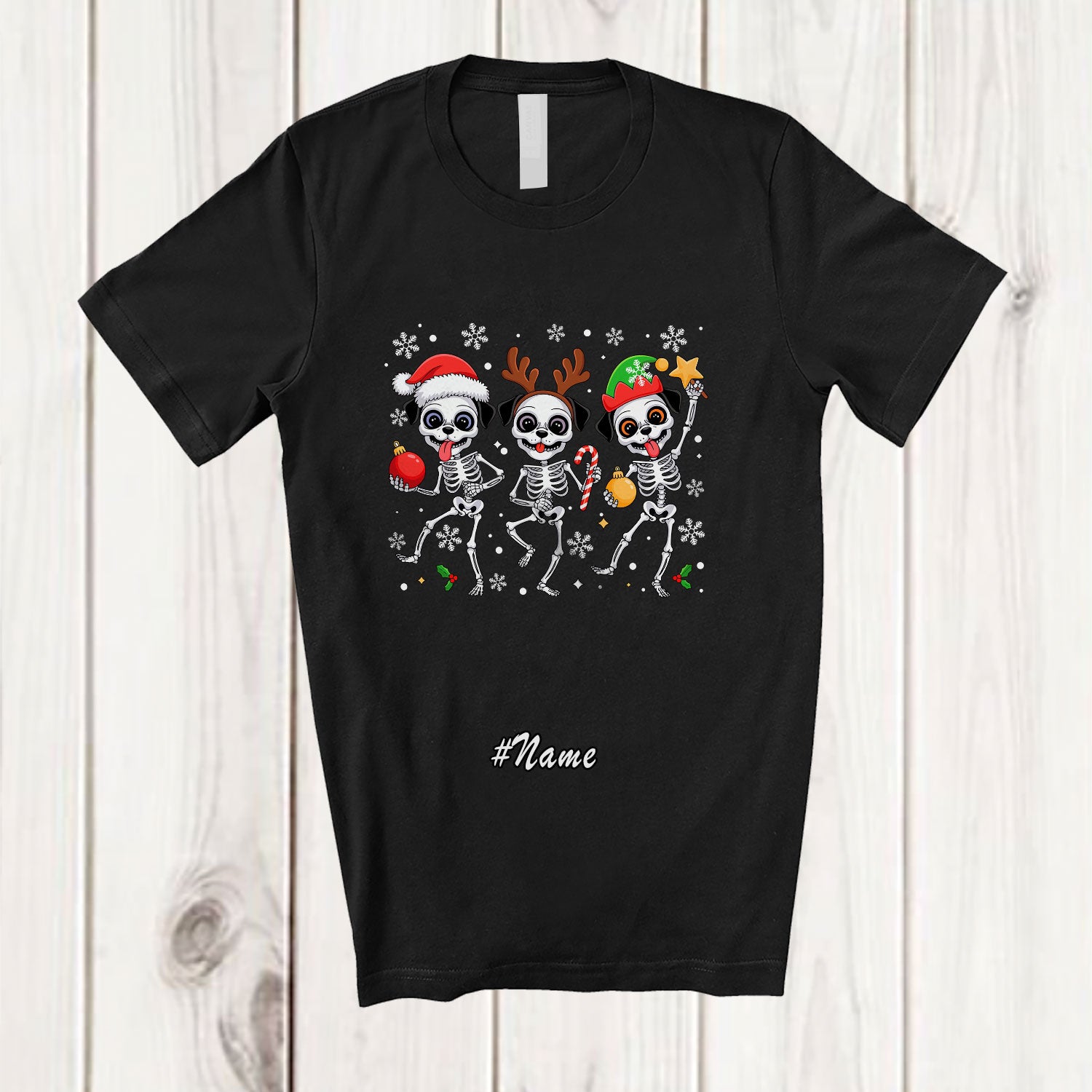Personalized Custom Name Three Dancing Skeleton Pug Owner; Amazing Christmas Family T-Shirt