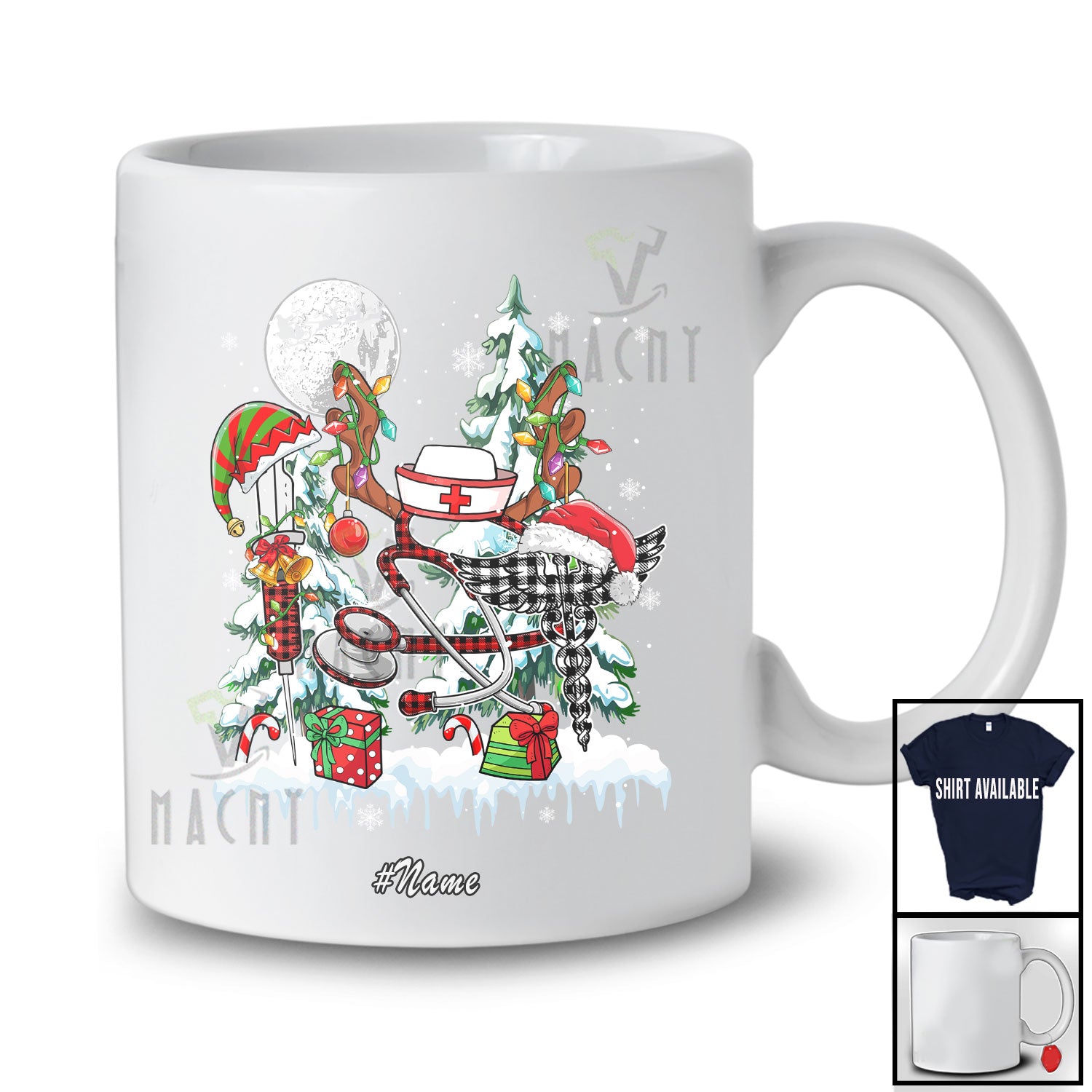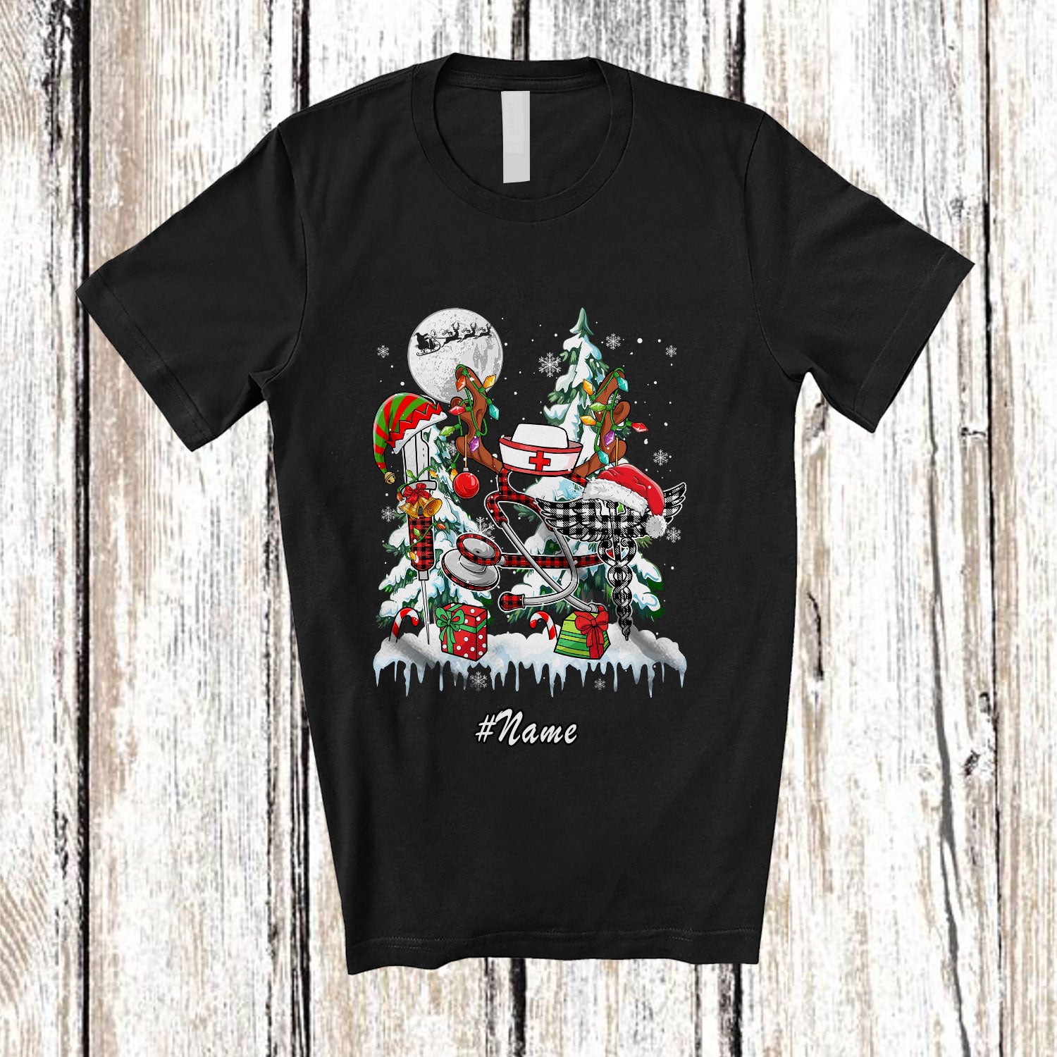 • Personalized Custom Name Three Plaid Santa Elf Nurse Tools; Proud Christmas Tree Jobs T-Shirt. This cotton t-shirt is a durable staple product with a classic fit. One of the most popular items, it has a relaxed style made for everyday and casual wear.