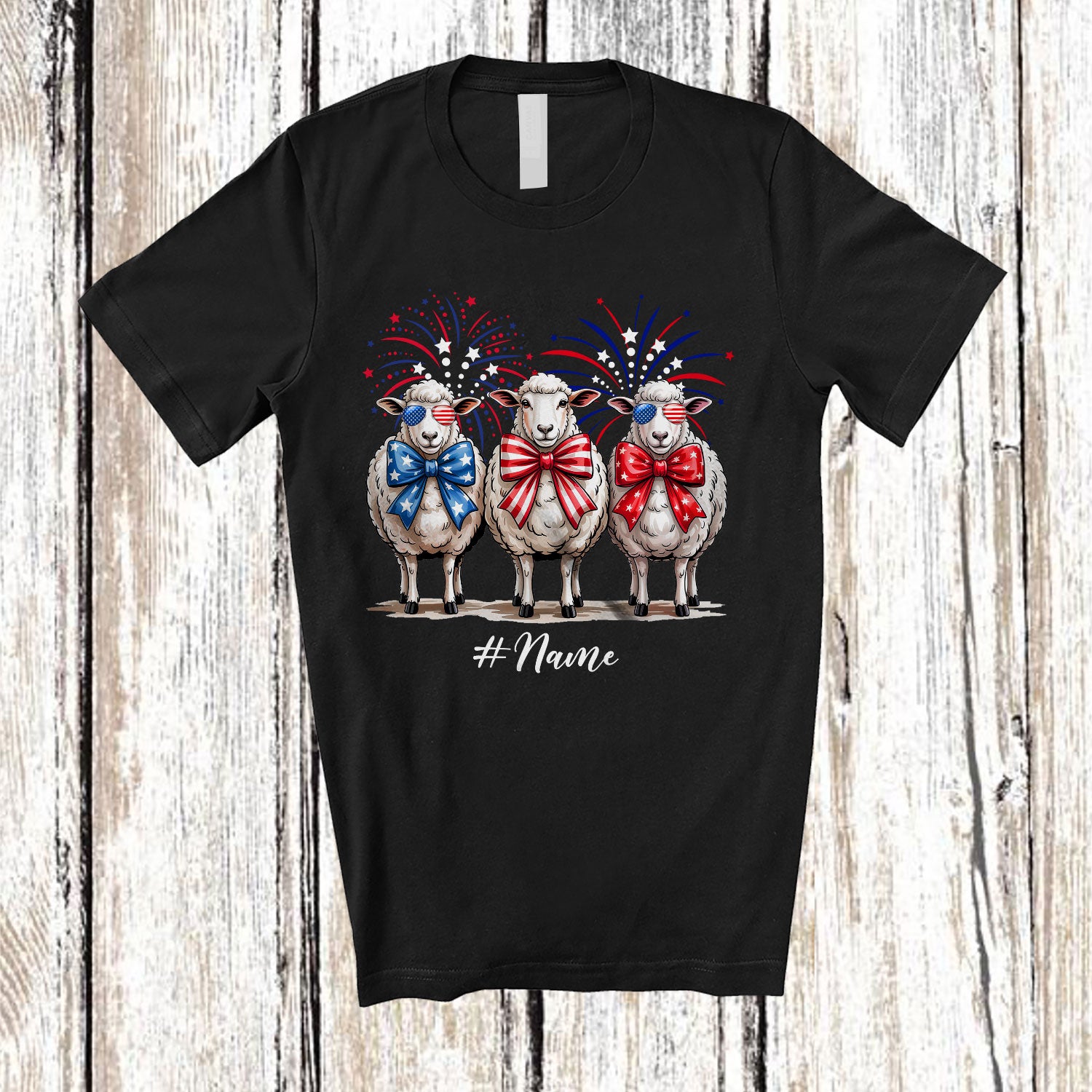 Personalized Custom Name Three Sheep Bow Tie; Amazing 4th of July Farming Farmer Patriotic T-Shirt