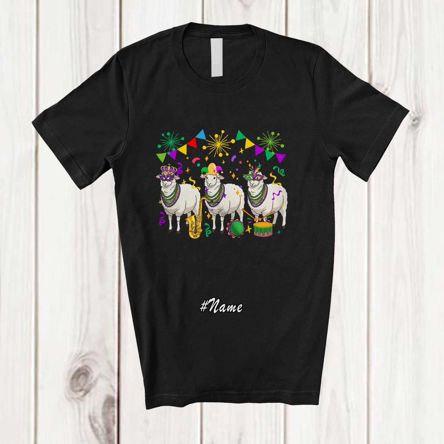 Personalized Custom Name Three Sheep Parades; Joyful Mardi Gras Beads Farmer Animal; Carnival T-Shirt