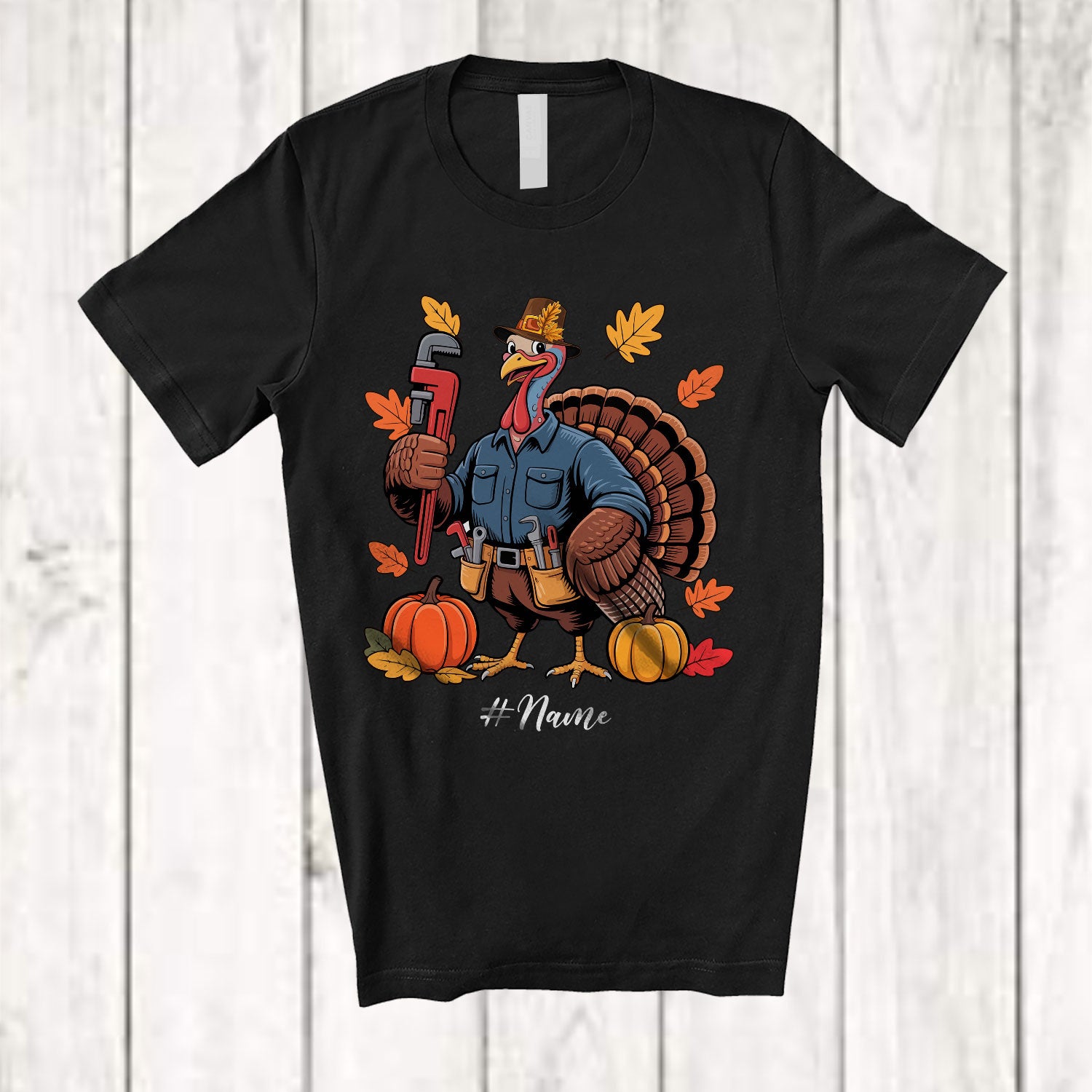 Personalized Custom Name Turkey Plumber; Amusing Thanksgiving Fall Leaf Pumpkin; Proud Job T-Shirt