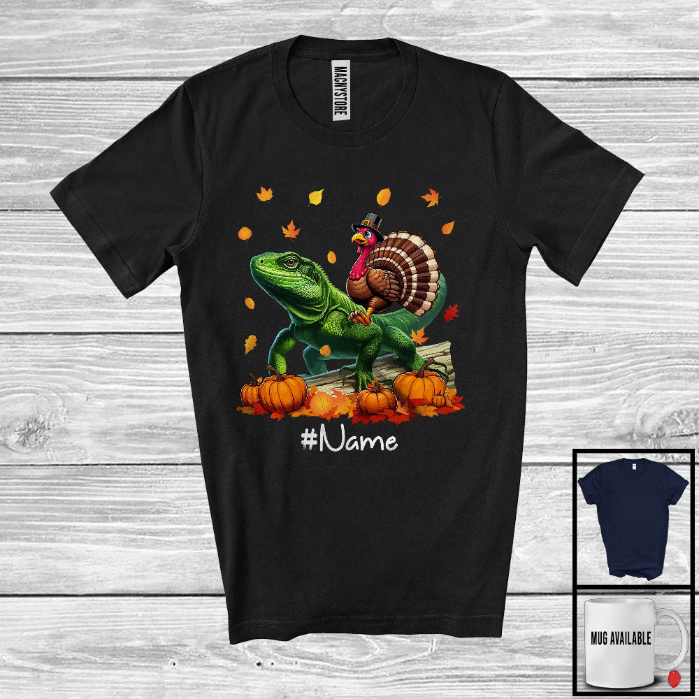 Personalized Custom Name Turkey Riding Lizard, Lovely Thanksgiving Pumpkins, Lizard Lover T-Shirt