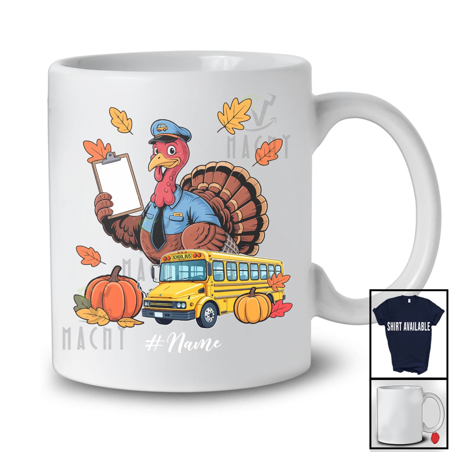 • Every product is unique, just like you. If you're looking for a product that fits the mold of your life, the Personalized Custom Name Turkey School Bus Driver; Amusing Thanksgiving Fall Leaf Pumpkin; Job T-Shirt is for you.
