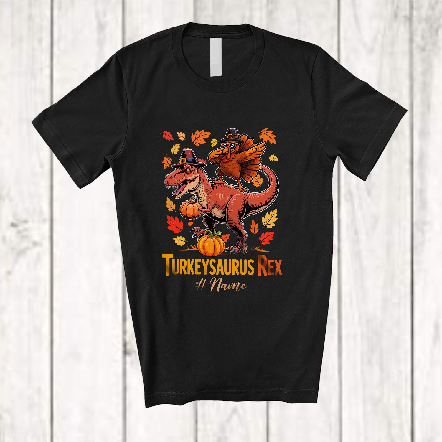Personalized Custom Name Turkeysaurus Rex; Joyful Thanksgiving Dabbing Turkey On T-Rex T-Shirt