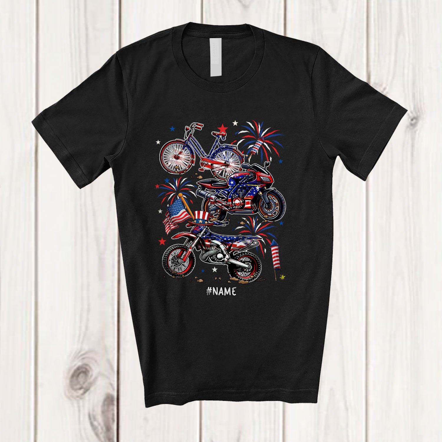 Personalized Custom Name Two Wheeler American Flag; Humorous 4th Of July Patriotic Biker T-Shirt