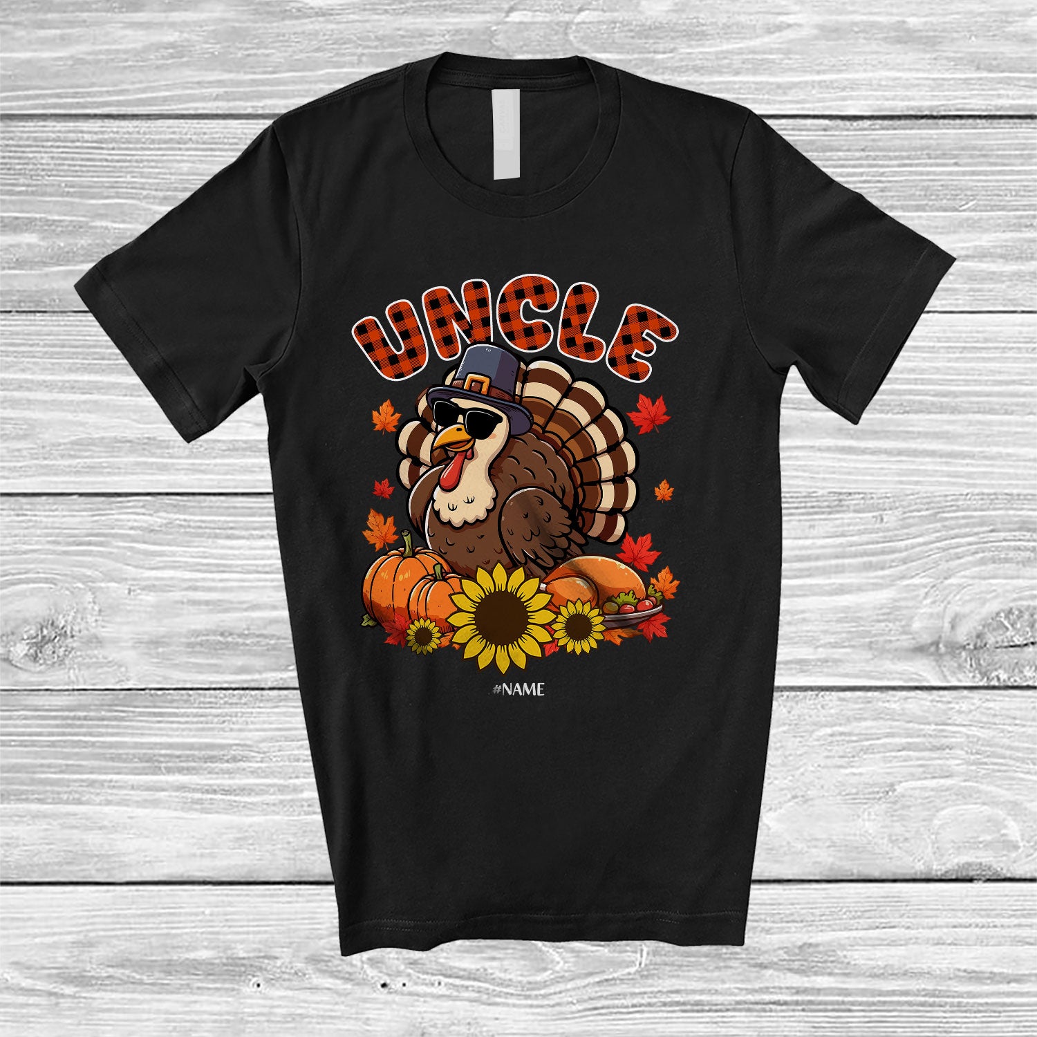 The Personalized Custom Name Uncle; Lovely Thanksgiving Plaid Turkey Pumpkin Sunflower; Family T-Shirt is the yin, to your yang. You've found what you're looking for.