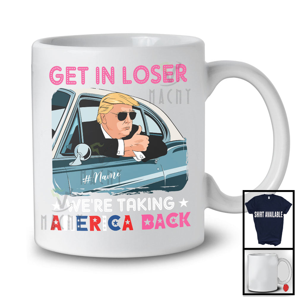 This Personalized Custom Name We're Taking America Back; Amazing Election Trump On Car 2024 T-Shirt is great idea gift for your family, friends in this birthday, christmas, mother's day, father's day, patrick's day or any holiday.