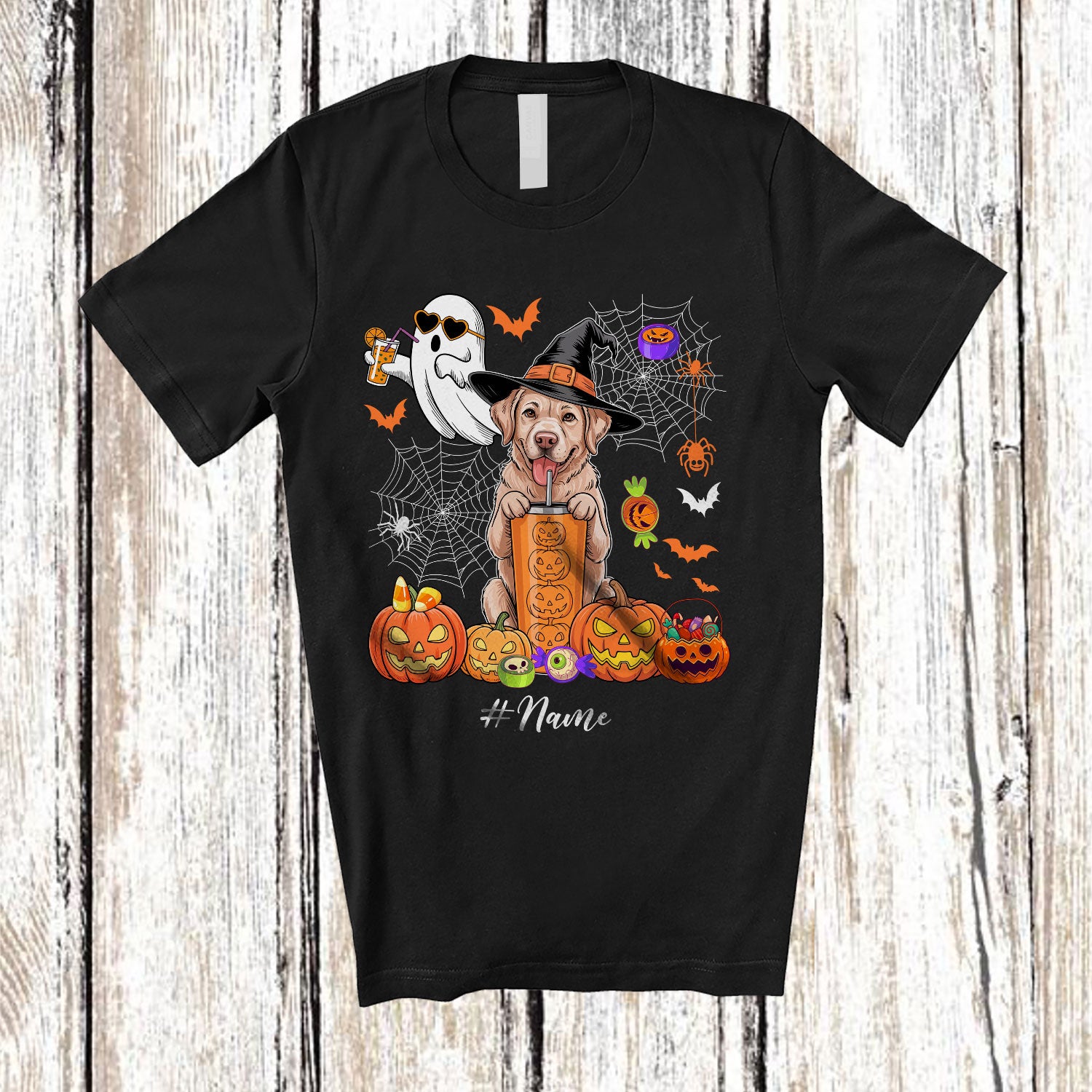 Personalized Custom Name Witch Labrador Retriever Drink Coffee; Horror Halloween Boo Ghost Pumpkin T-Shirt