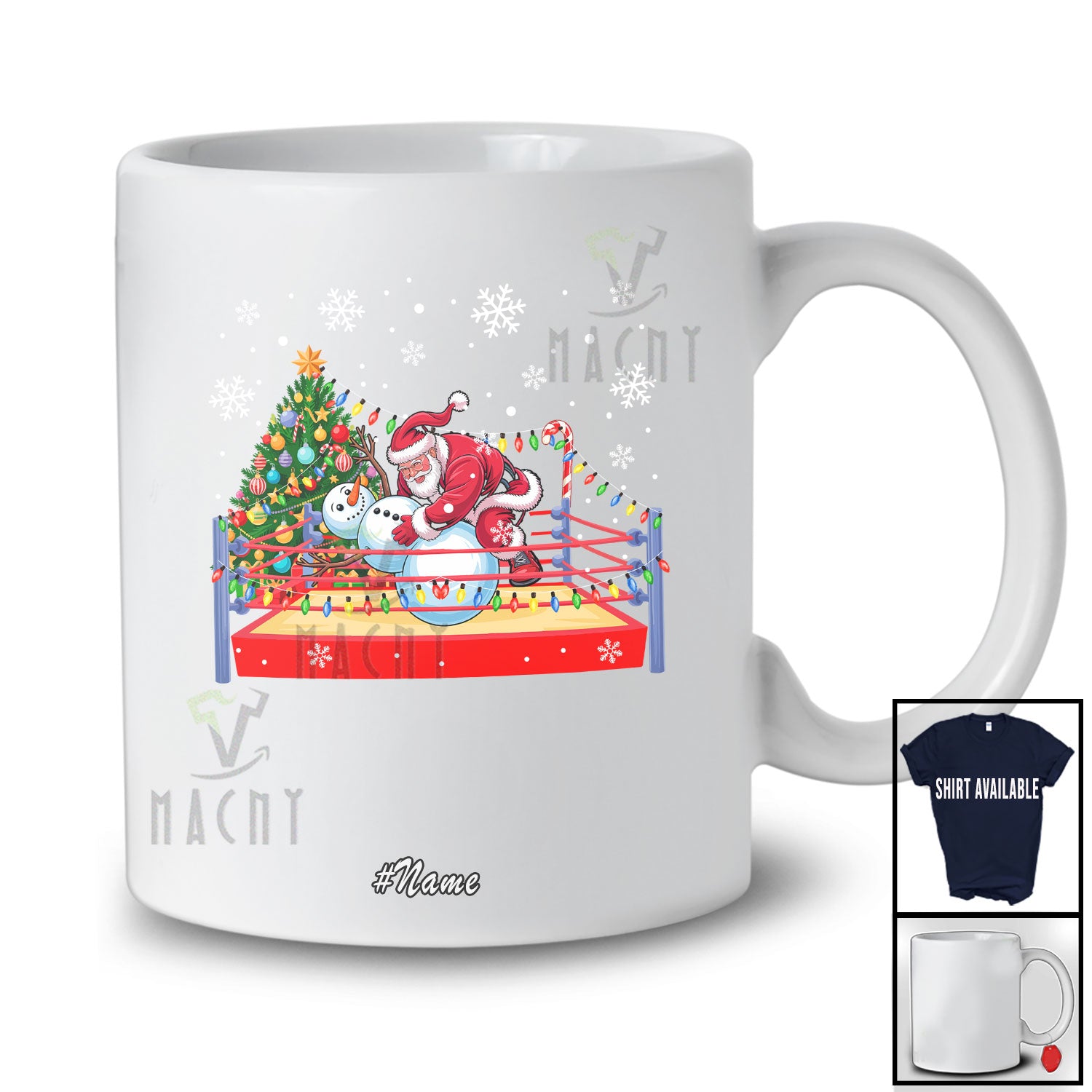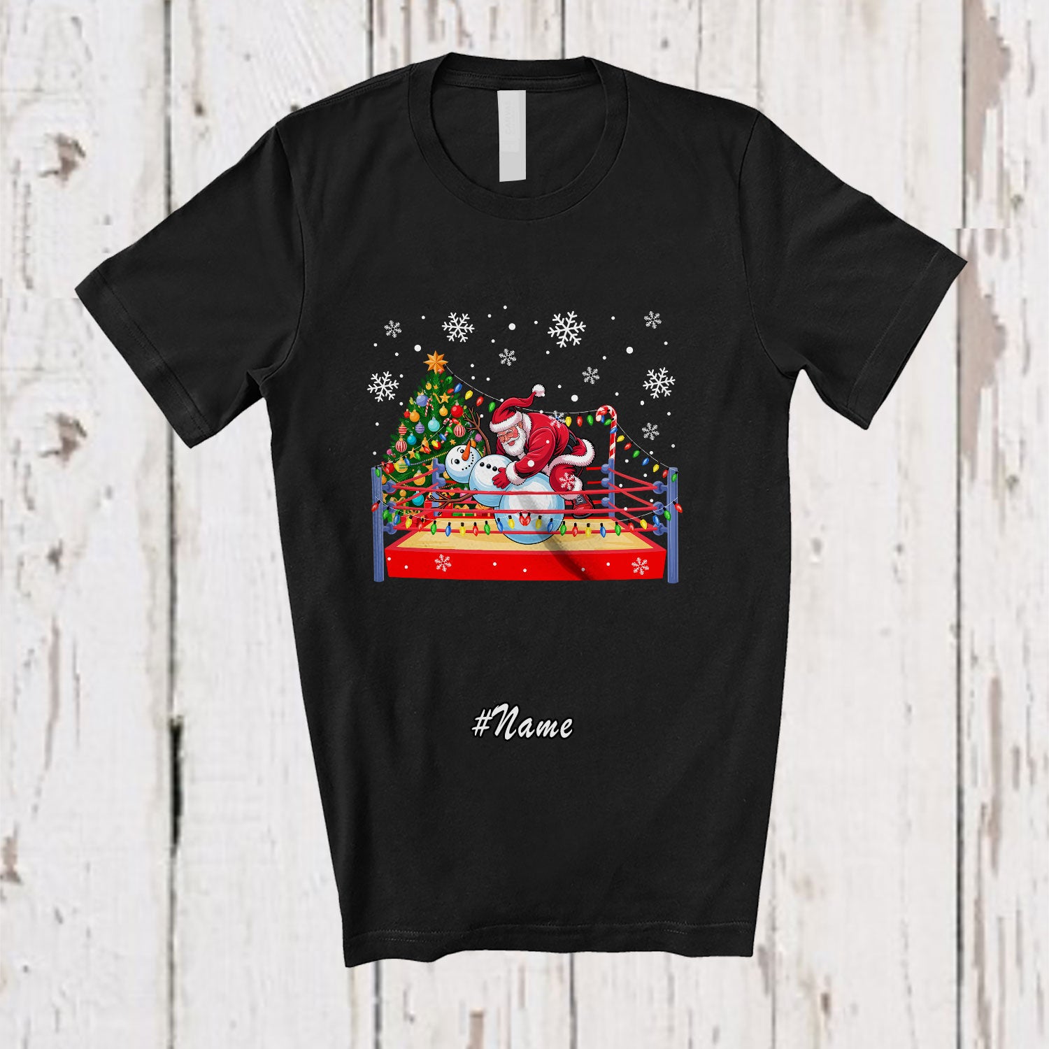 • Personalized Custom Name Wrestling Santa With Snowman; Joyful Christmas Lights Tree Sport Lover T-Shirt. This cotton t-shirt is a durable staple product with a classic fit. One of the most popular items, it has a relaxed style made for everyday and casual wear.