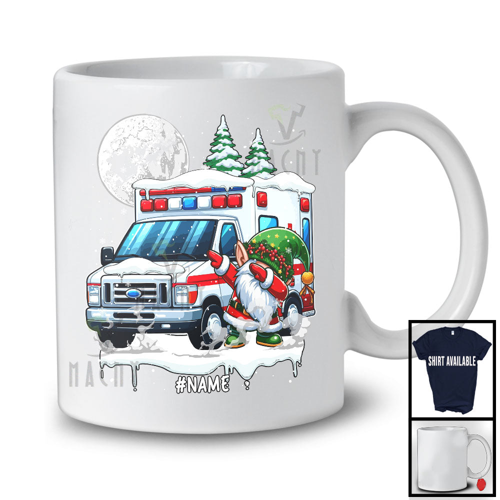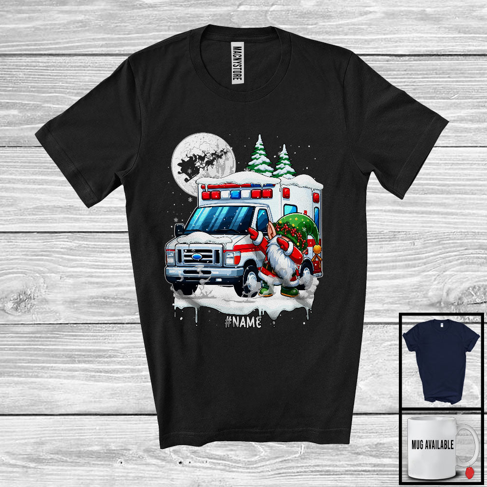Personalized Dabbing Gnome On Ambulance; Joyful Christmas Custom Name; Ambulance Driver T-Shirt