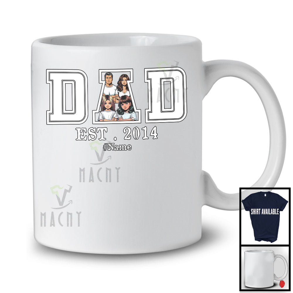 Personalized Dad Est 2024, Proud Father's Day Custom Name Dad Wife Son 2 Daughter, Family T-Shirt