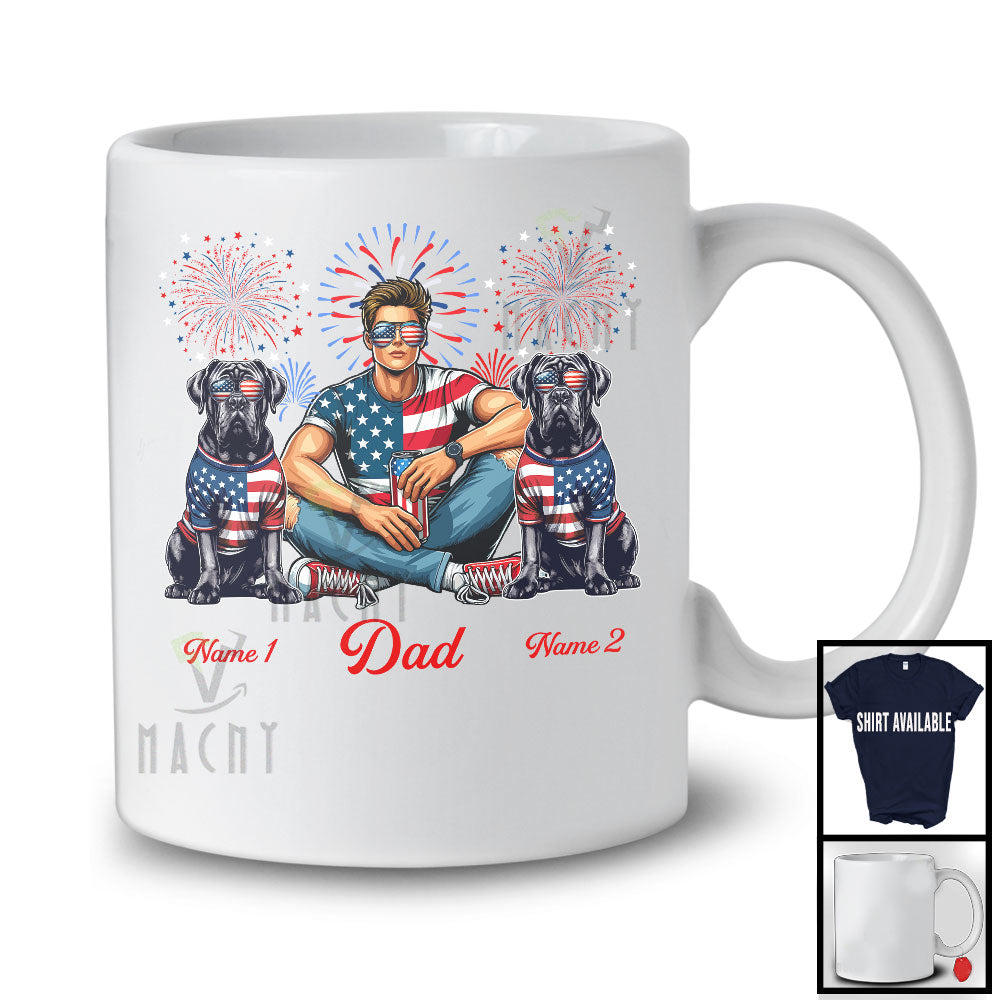 Personalized Dad With Two Custom Name Cane Corso, Amazing 4th Of July Fireworks Patriotic T-Shirt