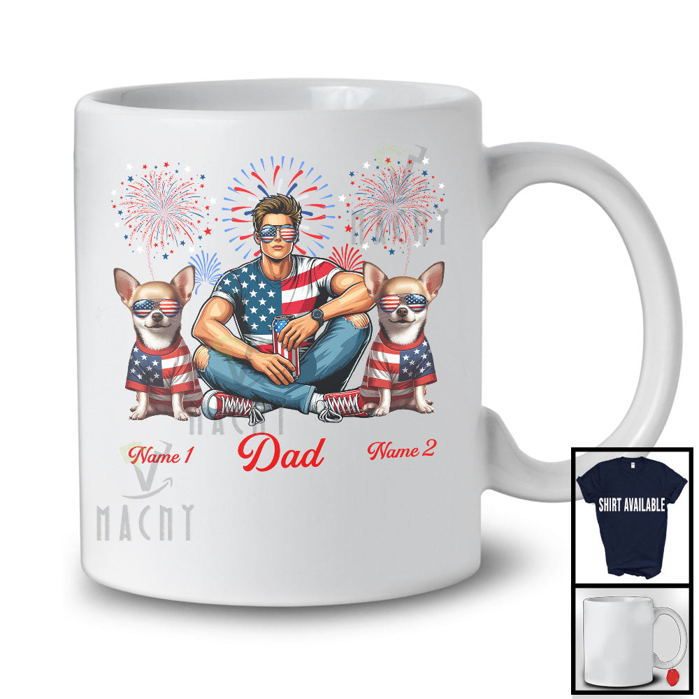 Personalized Dad With Two Custom Name Chihuahua, Amazing 4th Of July Fireworks Patriotic T-Shirt