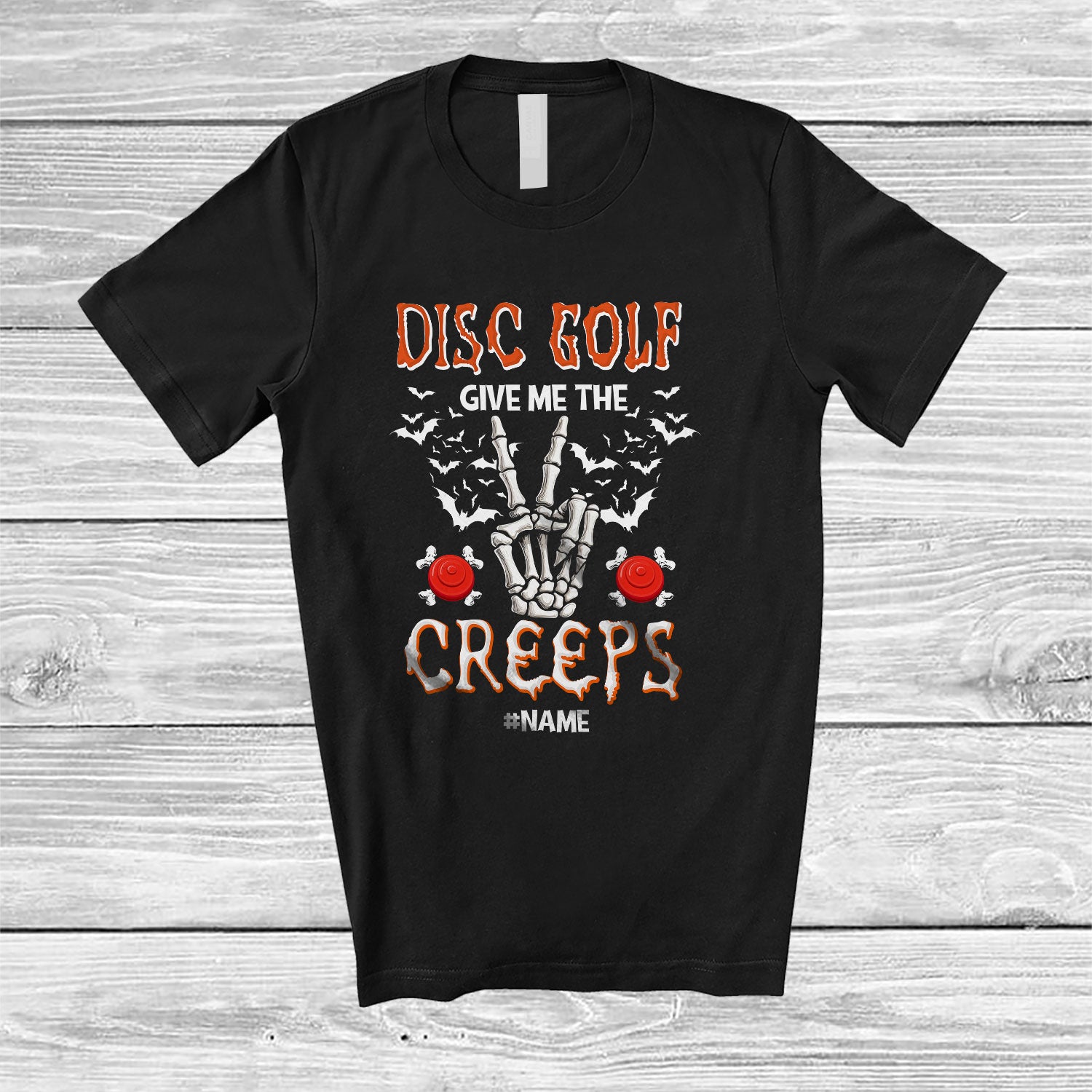Personalized Disc Golf Give Me Creeps; Proud Halloween Peace Skeleton Hand; Custom Name Player T-Shirt