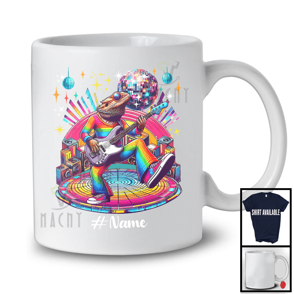 Personalized Disco Bearded Dragon Playing Guitar; Joyful Custom Name Guitarist Bearded Dragon; Music Lover T-Shirt