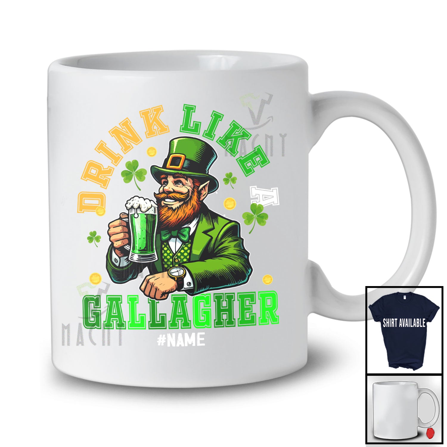 Personalized Drink Like A Gallagher; Joyful St. Patrick's Day Custom Name Leprechaun Drinking T-Shirt