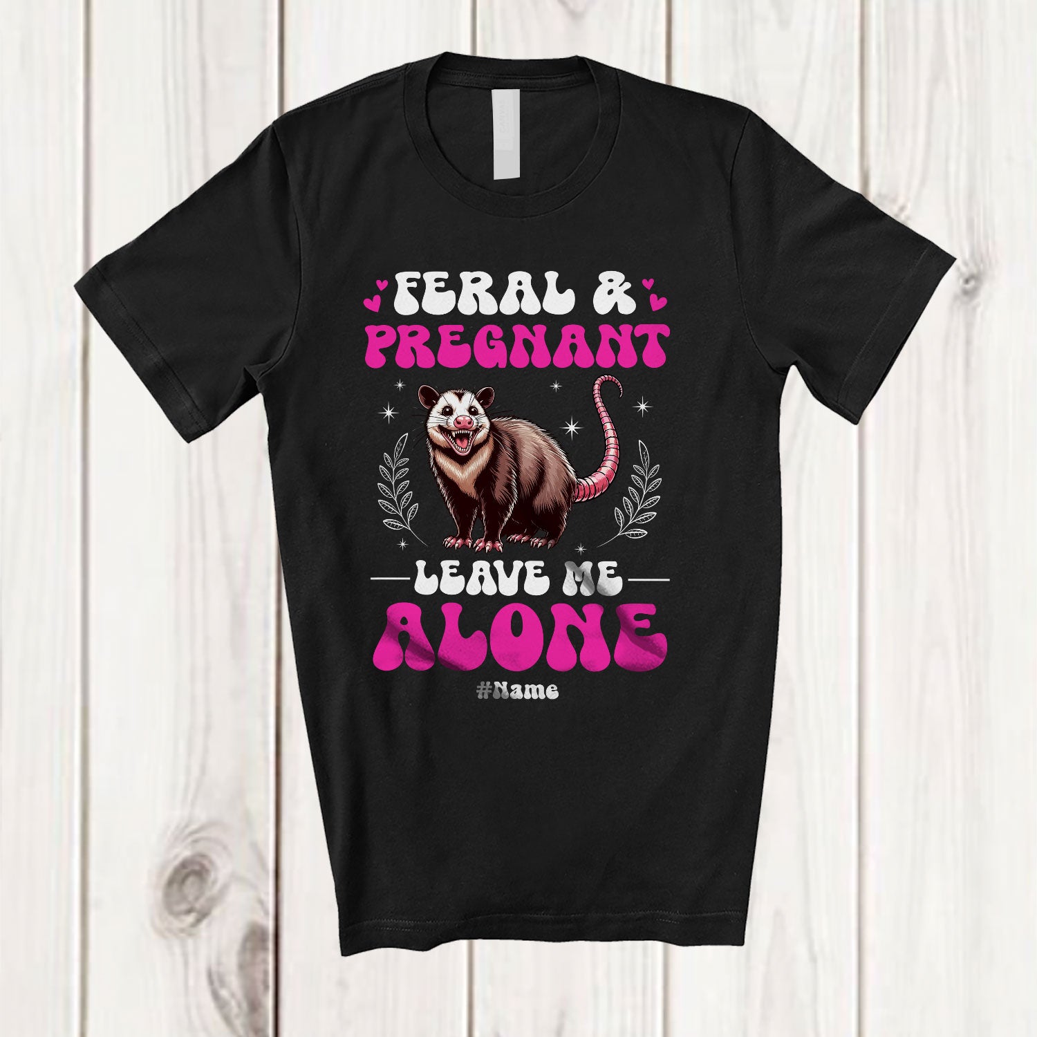 Personalized Feral and Pregnant Leave Me Alone; Lovely Pregnancy Custom Name Opossum T-Shirt