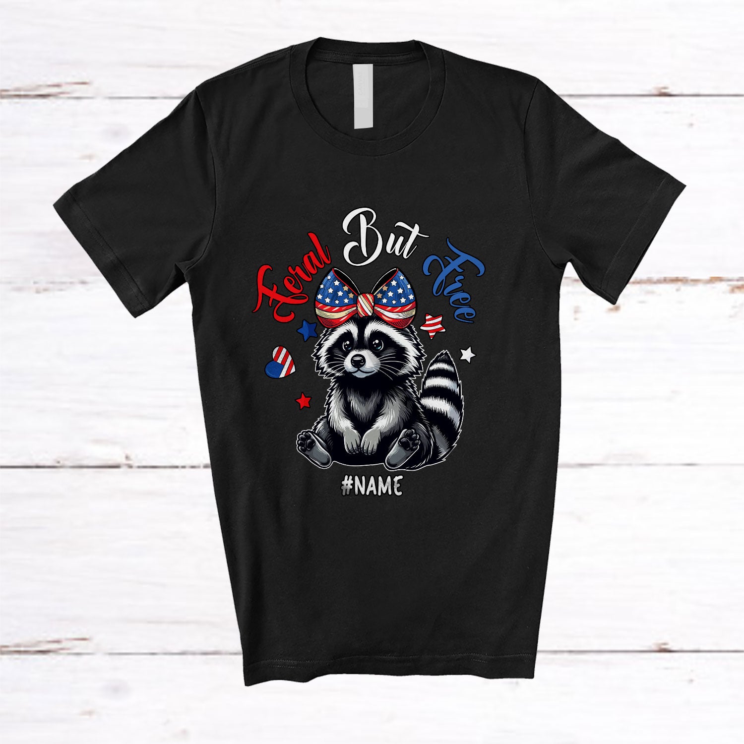 Personalized Feral But Free; Humorous 4th Of July Custom Name Patriotic Raccoon Trash Animal T-Shirt