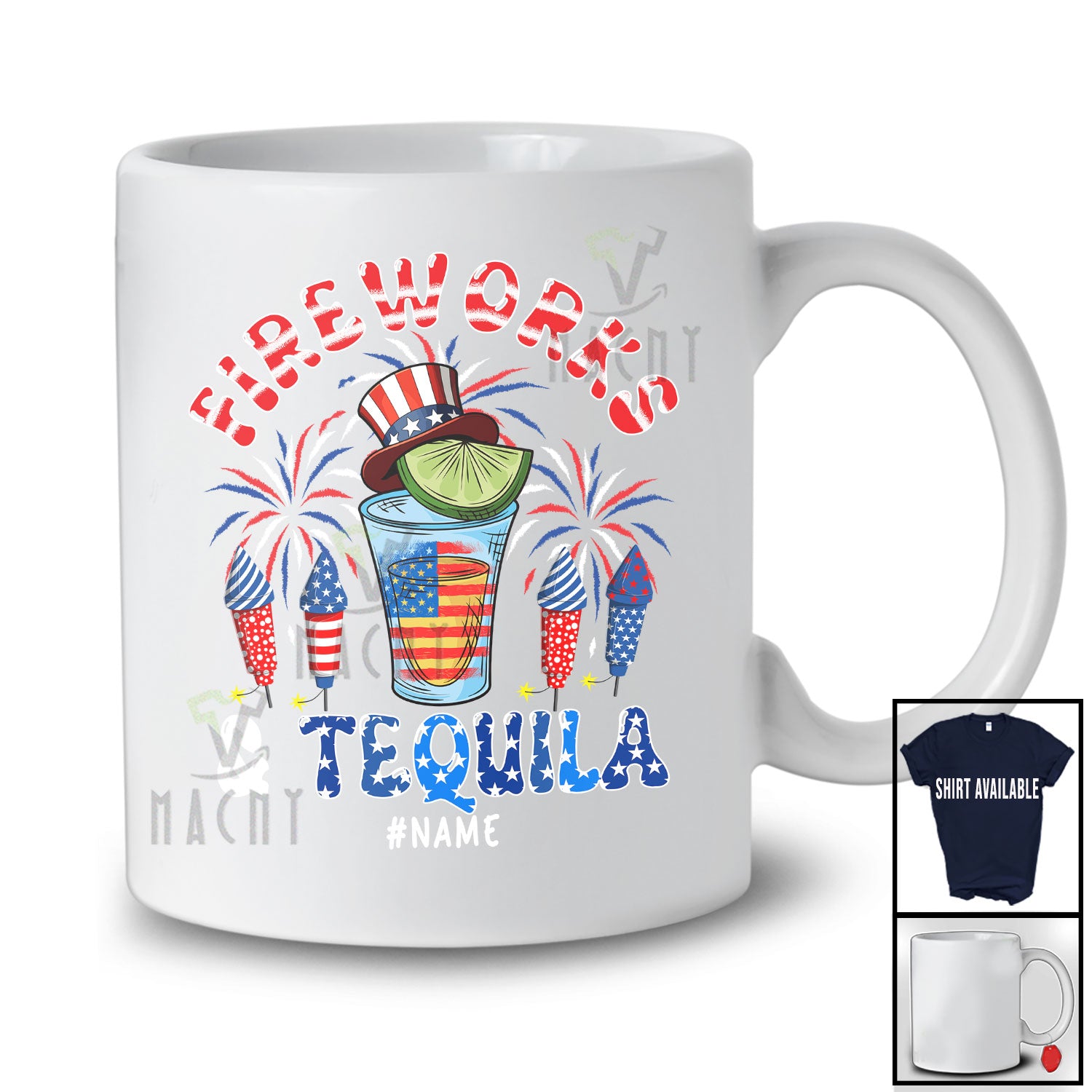new MacnyStore - Personalized Fireworks and Tequila; Cheerful 4th Of July Custom Name Drinking Drunker Patriotic T-Shirt – Macnystore