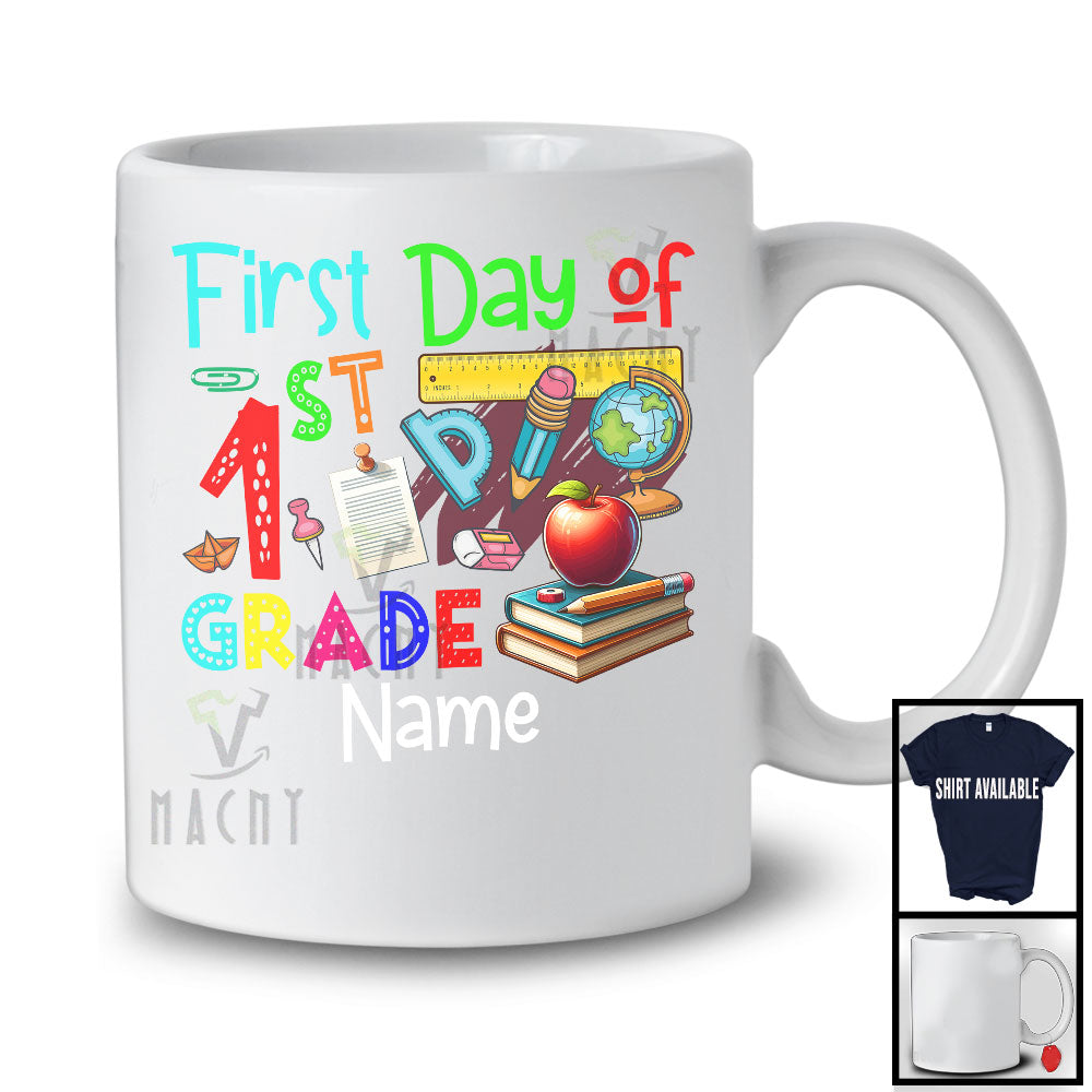 This Personalized First Day Of 1st Grade, Colorful Summer First Day Of School Things Books, Students T-Shirt is great idea gift for your family, friends in this birthday, christmas, mother's day, father's day, patrick's day or any holiday.