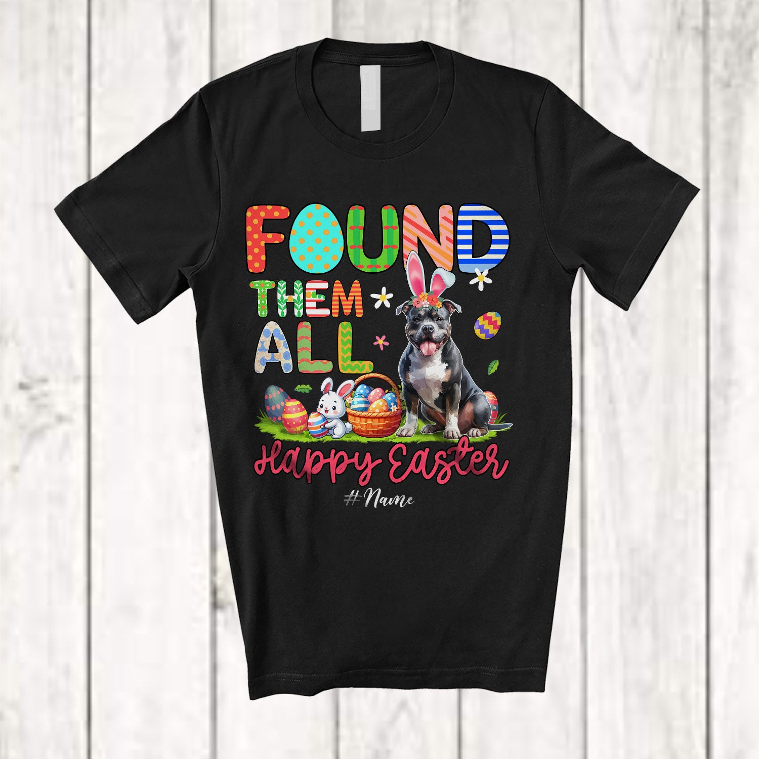 Personalized Found Them All; Happy Easter Custom Name Bunny Pit Bull With Eggs Basket T-Shirt