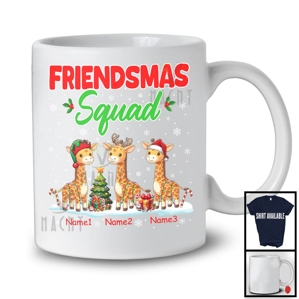 Personalized Friendsmas Squad; Awesome Christmas Lights Custom Name Three Giraffe T-Shirt