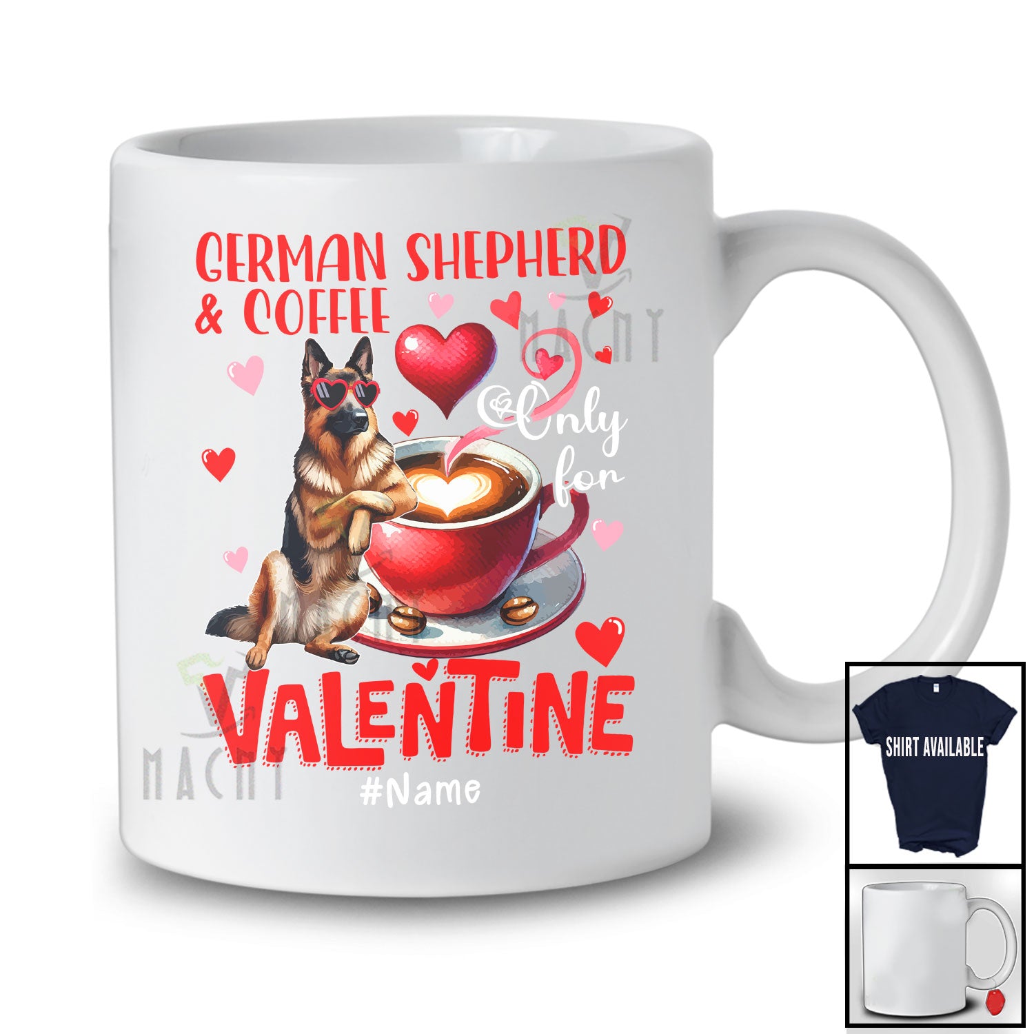 This Personalized German Shepherd And Coffee Only For Valentine; Lovely Custom Name Single; Animal T-Shirt is great idea gift for your family, friends in this birthday, christmas, mother's day, father's day, patrick's day or any holiday.