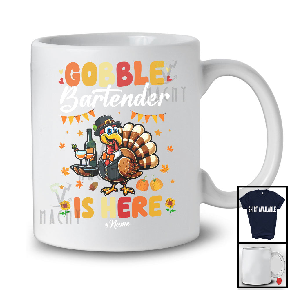 This Personalized Gobble Bartender Is Here; Humorous Thanksgiving Turkey; Custom Name Jobs T-Shirt is great idea gift for your family, friends in this birthday, christmas, mother's day, father's day, patrick's day or any holiday.