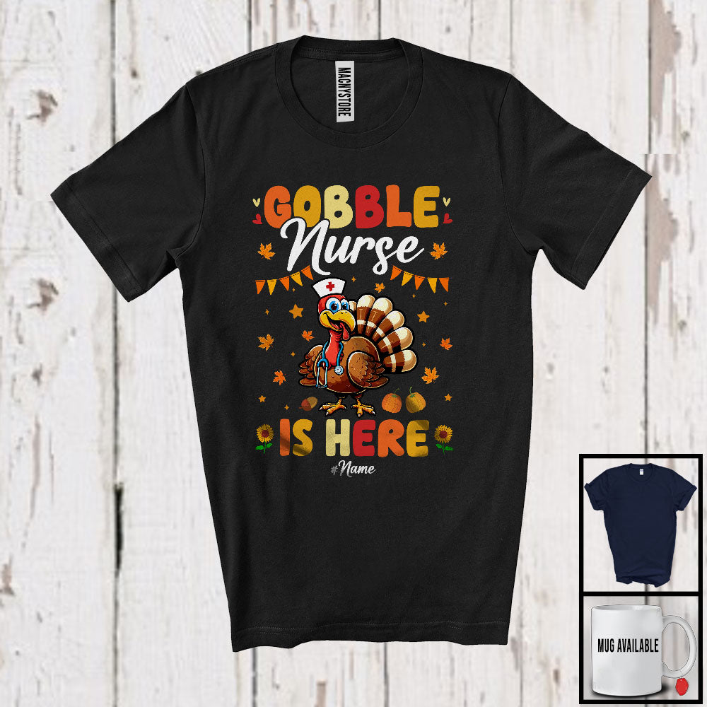 Personalized Gobble Nurse Is Here; Humorous Thanksgiving Turkey Nurse; Custom Name Jobs T-Shirt