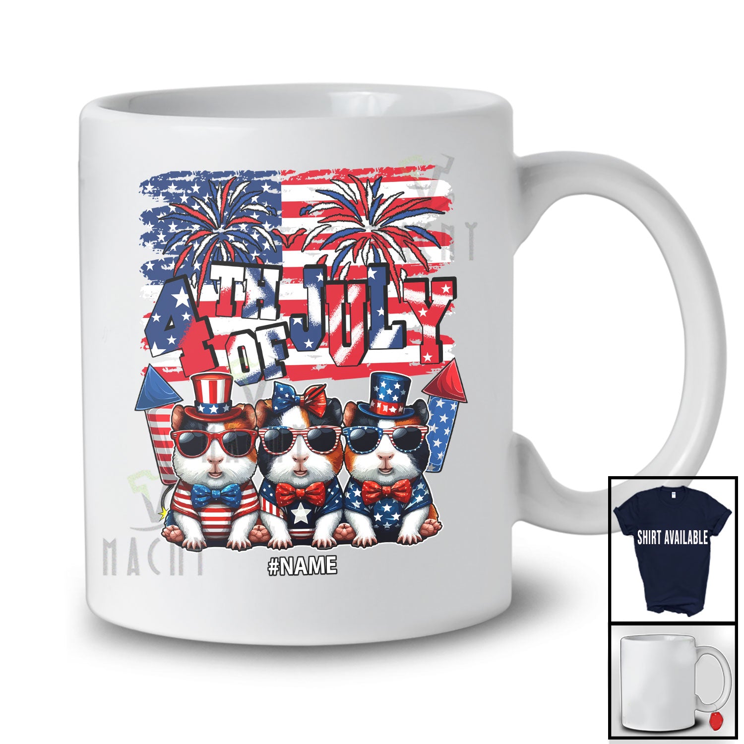 Personalized Happy 4th Of July; Lovely Custom Name Guinea Pig Sunglasses US Flag; Patriotic T-Shirt. This cotton t-shirt is a durable staple product with a classic fit. One of the most popular items, it has a relaxed style made for everyday and casual wear.