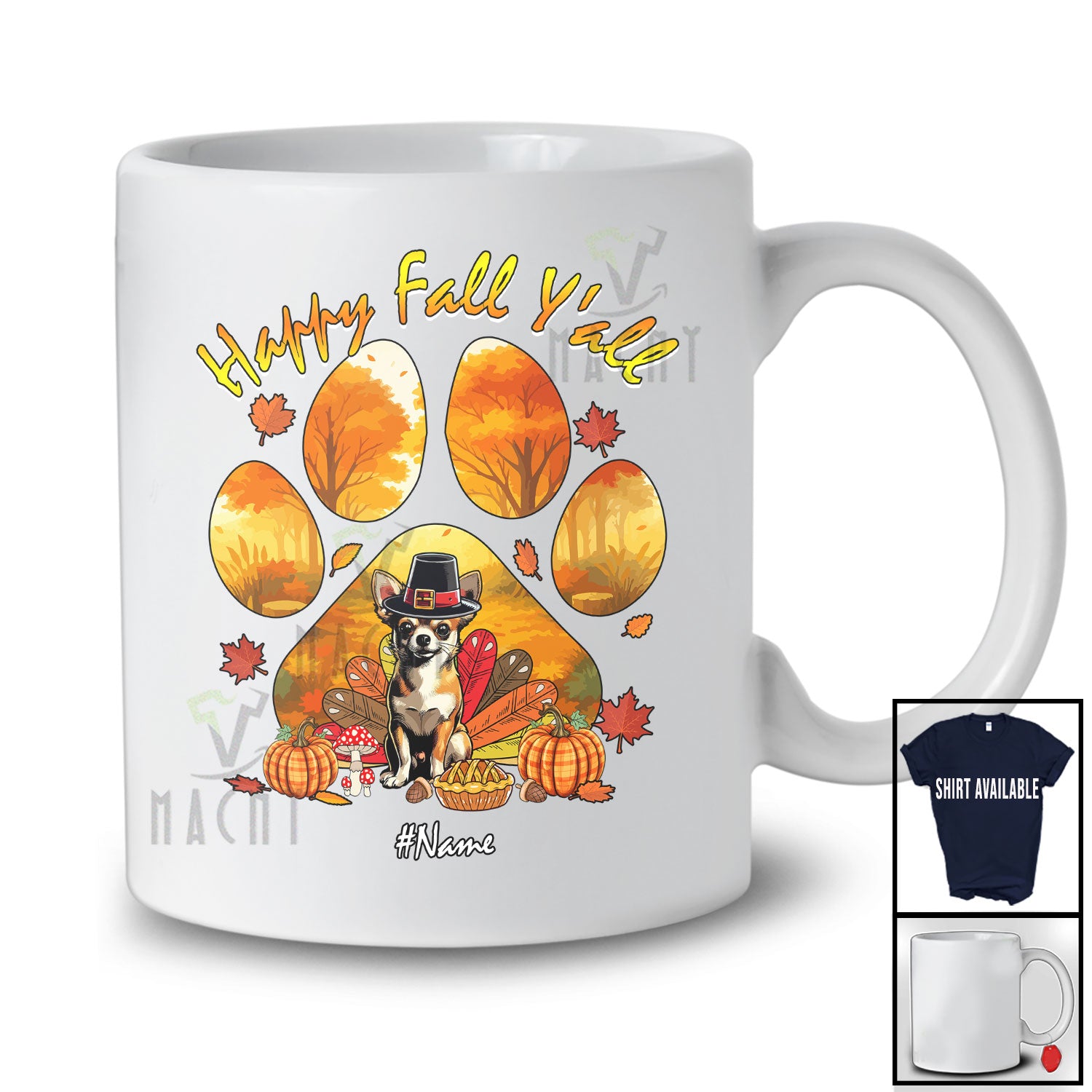 Personalized Happy Fall Y'all; Lovely Thanksgiving Custom Name Turkey Chihuahua Paws; Fall Leaf T-Shirt