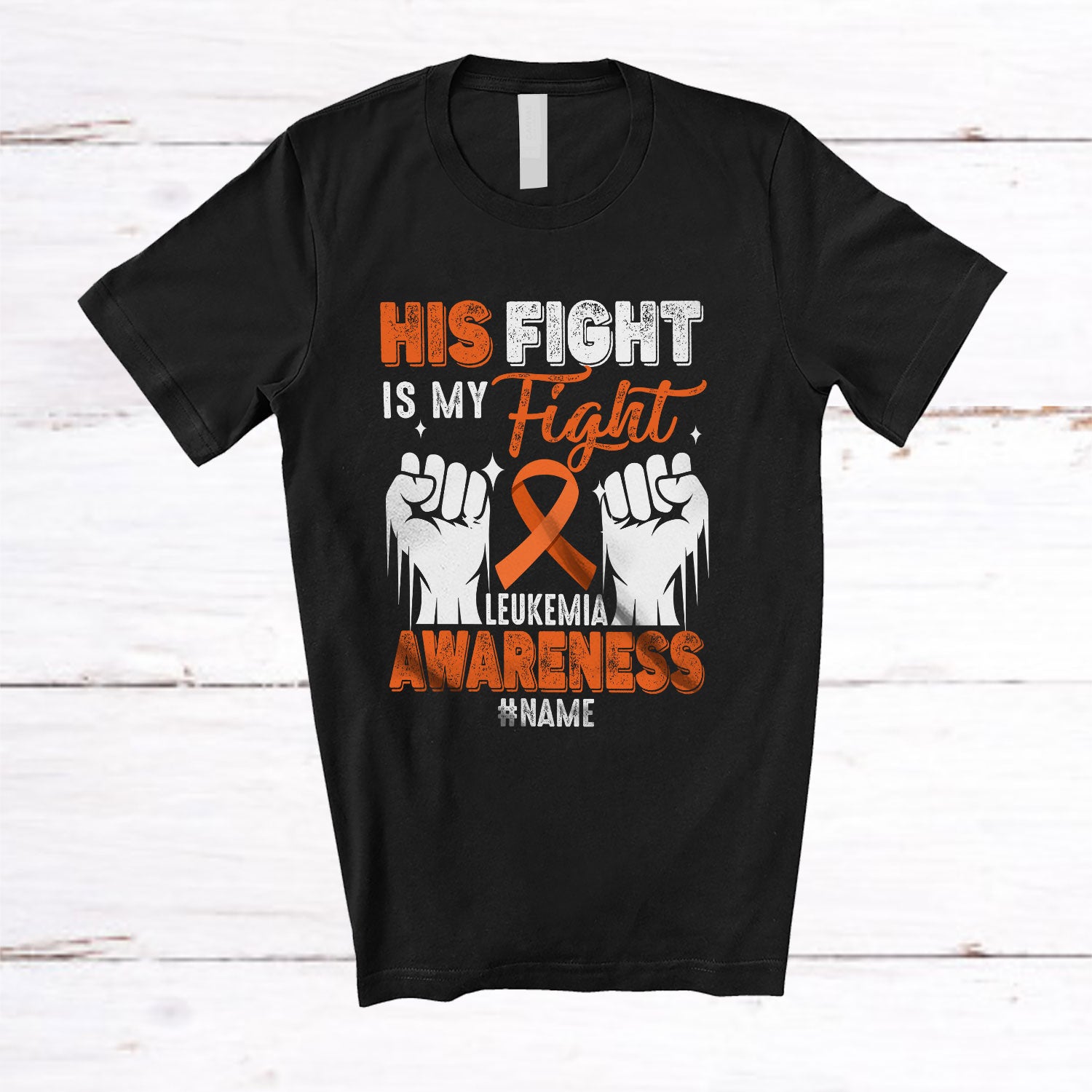 Personalized His Fight is My Fight; Proud Leukemia TBI Ribbon Hands; Custom Name Couple T-Shirt